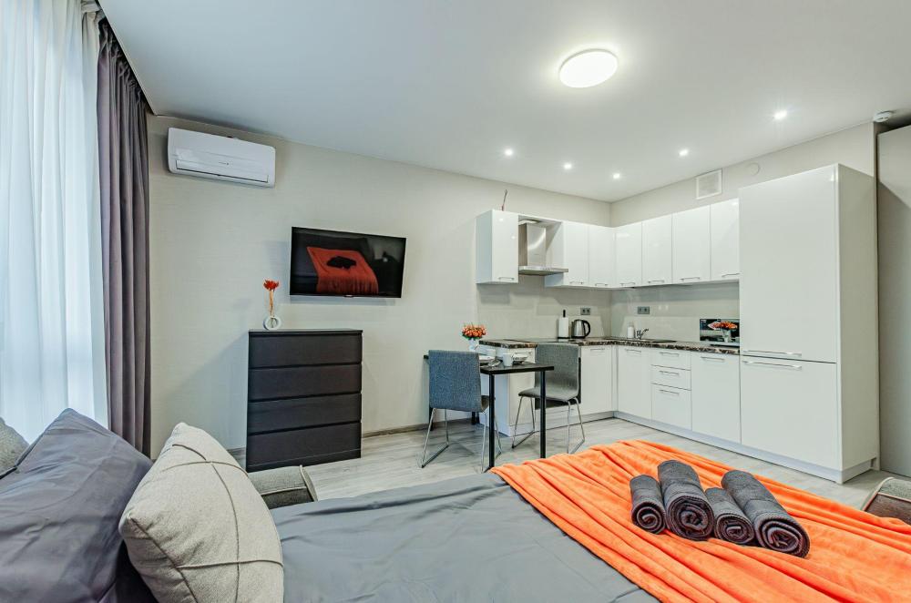 Предлагаем вам остановиться в нашей приятной квартире-студии, расположенной в жилом комплексе «Royal Residence» по адресу Волкова, 12. Этот современный дом находится в историческом центре города на пересечении улиц Тихомирнова и Волкова, что обеспечивает удобный доступ ко всем основным достопримечательностям Казани. Описание квартиры: Наша квартира-студия оснащена всем необходимым для комфортного проживания. Здесь вы найдете: удобный двуспальный диван. Полностью укомплектованный кухонный гарнитур с плитой, микроволновкой, посудомоечной машиной и электрическим чайником для приготовления ваших любимых блюд. Стиральная машина, утюг и пылесос для вашего удобства. Телевизор и Wi-Fi для развлечений и связи с близкими. Шкаф в коридоре для хранения ваших вещей. Вся необходимая посуда, постельное белье, полотенца и ванные принадлежности. Удобная локация: Легкий доступ к основным транспортным маршрутам и удобный выезд во все концы города. В пешей доступности находятся парки, рестораны и продуктовые магазины. До ТЦ «Кольцо» всего 7 минут пешком. Безопасность: Круглосуточный консьерж-сервис, видеонаблюдение в подъезде и закрытая территория обеспечивают максимальную безопасность. Доступ на территорию внутреннего двора и детской площадки осуществляется только через лобби, что исключает проникновение посторонних лиц.
