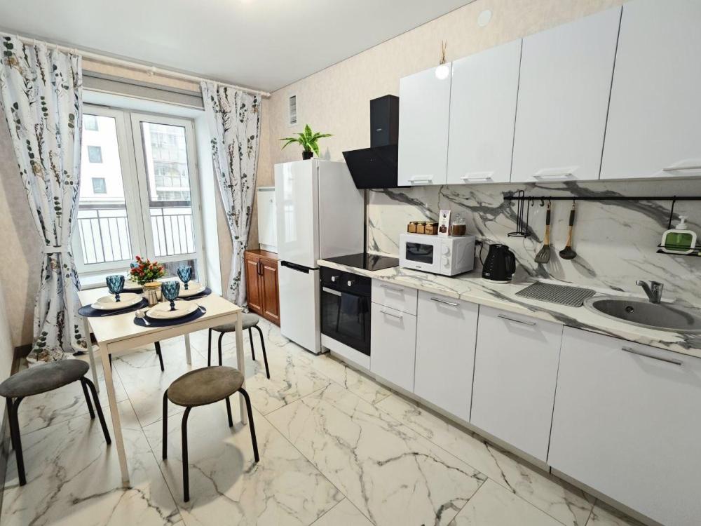 Уютная, светлая квартира в новом ЖК В квартире есть всё для комфортного проживания 4х гостей: постельное белье, полотенца, душевые принадлежности, телевизор, удобная кровать , диван, чай, кофе, сахар, фен, утюг, гладильная доска, водонагреватель, кондиционер, высокоскоростной интернет, wi-fi, микроволновая печь, посуда, столовые принадлежности. В пешей доступности: лес, ТЦ Южный, рестораны, кафе, магазины 10 минут до станции метро Горки пешком 15 минут на автомобиле до центра города 20 минут на общественном транспорте до центра города Имеется бесплатная парковка для гостей