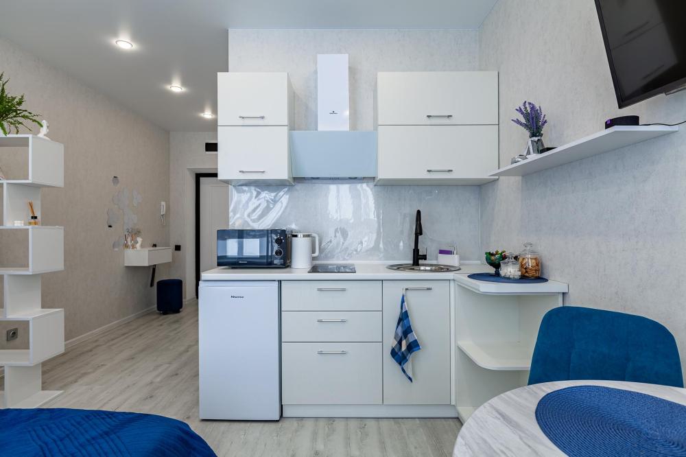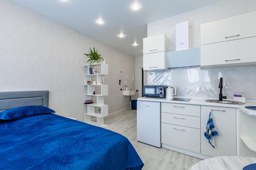 Квартира-студия в одной из лучших локаций города Казани – на берегу озера Кабан. В квартире можно разместить 2 взрослых гостей и 1 ребенка. Спальная зона – это двуспальная кровать и раскладное односпальное кресло-кровать. На кухне: микроволновая печь, холодильник, электрическая плита, электрический чайник и все необходимые столовые приборы на 3 персоны. Минибар: (энергетик, кола, вода), чёрный и зелёный чай, кофе, 2 шоколадки. В ванной комнате полотенца для каждого гостя, тапочки (2 пары), халаты, шампунь, гель для душа, жидкое мыло, зубная щетка, паста и бритва, ватные диски и палочки, бомбочки для ванны. Полотенца на каждого гостя. При заселении 2-х человек спальное место одно на двоих (одно одеяло). Дополнительный комплект постельного белья оплачивается отдельно. Стирка постельного белья и полотенец производится прачечной. Бесплатный Wi-Fi. -Система самостоятельного заселения в удобное для вас время. Свяжитесь с нами и оставьте ваш контактный номер телефона администратору. В день заезда с вами свяжется наш администратор, вы высылаете копию паспорта (ФИО и регистрация), он отправит вам инструкцию по заселению. -Залог 3000₽ вы отправляете в момент заселения в квартиру, мы вернем вам его после проверки квартиры горничной. -Заселение в квартиру с 14:00, выезд – 12:00. 2 часа отводятся на подготовку квартиры для следующего гостя. Ранний заезд (и/или поздний выезд) возможны при условии свободных суток до (и/или после) заселения за дополнительную плату.
