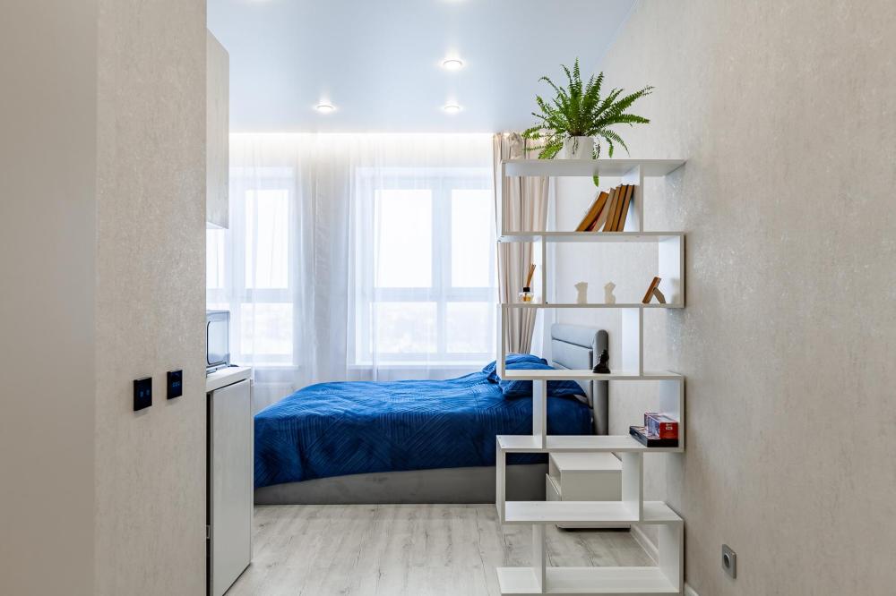 Уютная квартира-студия в одной из лучших локаций города Казани – на берегу озера Кабан. В квартире можно разместить 2 взрослых гостей. Спальная зона – это двуспальная кровать На кухне: микроволновая печь, холодильник, электрическая плита, электрический чайник и все необходимые столовые приборы на 2 персоны. В ванной комнате шампунь, гель для душа. Полотенца на каждого гостя. При заселении 2-х человек спальное место одно на двоих (одно одеяло). Дополнительный комплект постельного белья оплачивается отдельно. Стирка постельного белья и полотенец производится прачечной. Бесплатный Wi-Fi. -Система самостоятельного заселения в удобное для вас время. Свяжитесь с нами и оставьте ваш контактный номер телефона администратору. В день заезда с вами свяжется наш администратор, вы высылаете копию паспорта (ФИО и регистрация), он отправит вам инструкцию по заселению