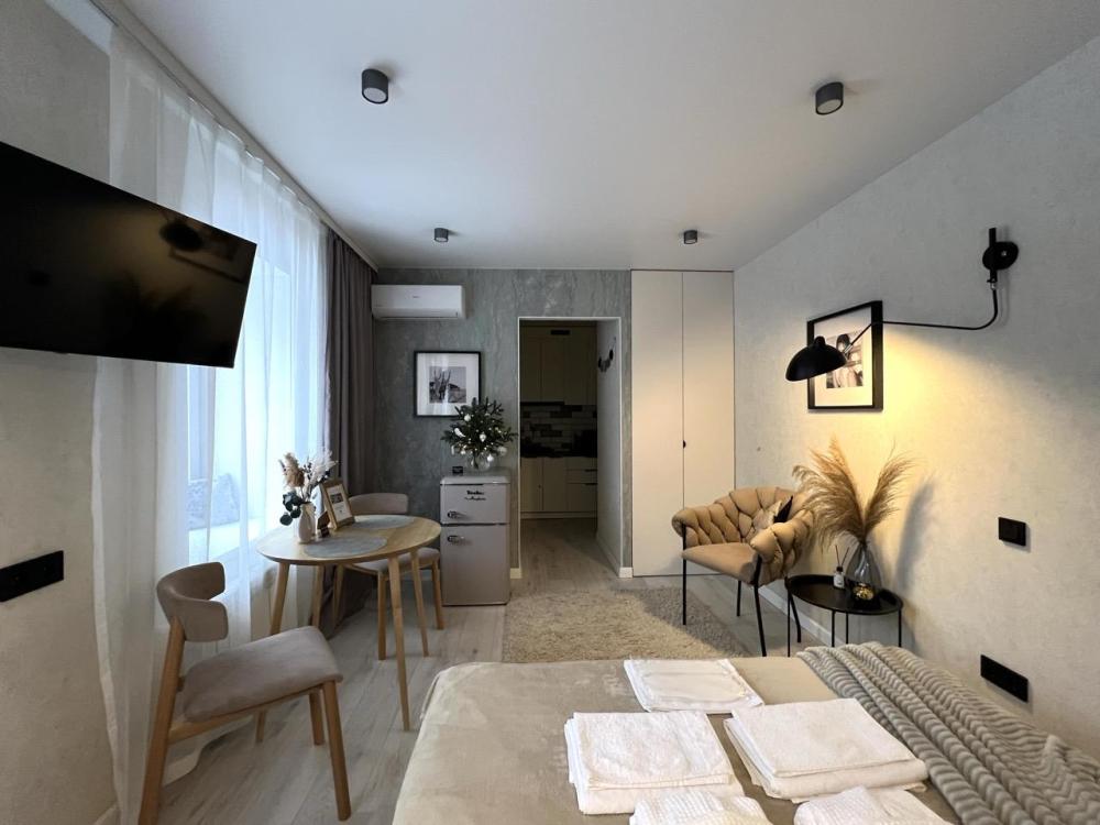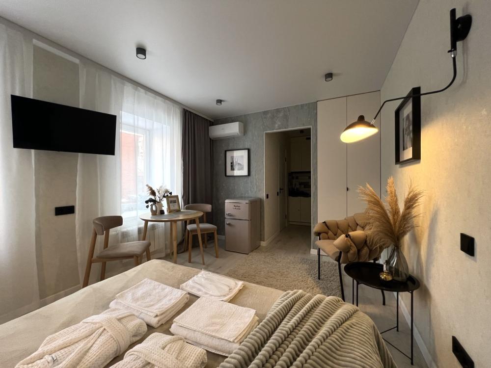 Атмосферная студия, расположенную в старинном доме — первой многоэтажке исторического квартала Марусовка, района недорогого жилья, где когда-то жили Горький и Шаляпин. О локации. Вы окажетесь в сердце Казани, самом богемном районе города, где мечтает жить каждый его житель. Всего в минуте ходьбы — Лядской Сад, камерный атмосферный сквер, где проходят джазовые вечера под открытым небом. В шаговой доступности (1-2 минуты) находятся отличные кофейни Surf Coffee и Skuratov, популярные рестораны «Артель», «Марусовка». На одной улице — кафе-кондитерская Smorodina с прекрасными завтраками. Всего в 5 минутах пешком — пешеходная улица Баумана, которая приведет вас к Казанскому Кремлю (объекту Всемирного наследия ЮНЕСКО). Также в 5 минутах — музеи изобразительного и современного искусства. В 10-15 минутах от вас — Театр оперы и балета, Фуксовский сад с панорамным видом на Казань и реку Казанку и спуском к Набережной, в другой стороне — озеро Кабан, за которым начинается Старо-Татарская слобода с её уникальной атмосферой. Остановившись здесь, вы сможете не только увидеть туристическую Казань, но и насладиться её локальной атмосферой глазами местных жителей, знающих все секреты этого удивительного города. Студия идеально подходит для комфортного проживания 2 человек на уровне отеля: — Просторная двуспальная кровать. — Ванная комната с душем для расслабления после насыщенного дня. — Удобная кухня и столовая зона для возможности перекусить дома. — Полный набор бытовой техники: холодильник, стиральная машина, плита, чайник. — Бесплатный Wi-Fi, smart-TV и Яндекс-станция Алиса, чтобы вы могли наслаждаться любимыми фильмами и музыкой. — Постельное бельё, полотенца, халаты и тапочки для вашего удобства. — Гладильные принадлежности, фен и средства личной гигиены. — Бесплатная вода, чай и зерновой кофе для вашего комфорта.