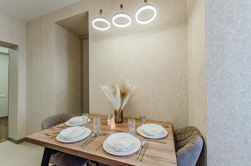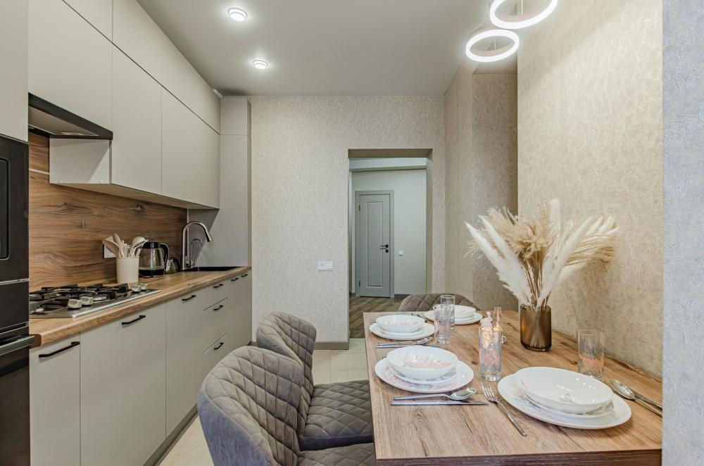 Для комфортного проживания в апартаментах есть: Wi-Fi кондиционер стиральная машина гладильная доска и утюг фен бойлер холодильник плита и духовка микроволновая печь электрический чайник вся необходимая посуда бытовая химия и средства гигиены