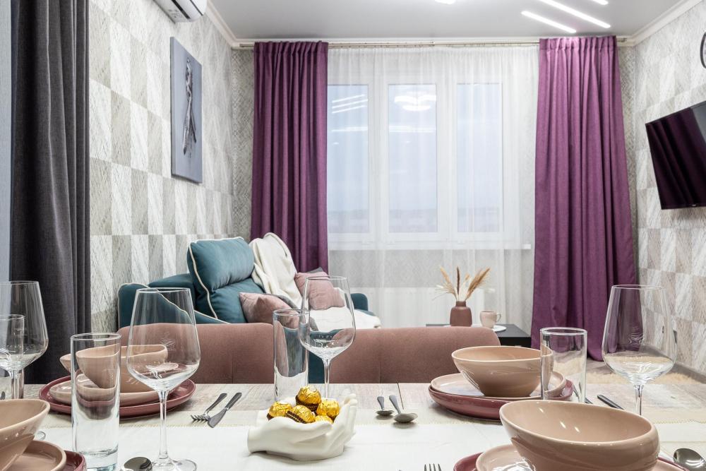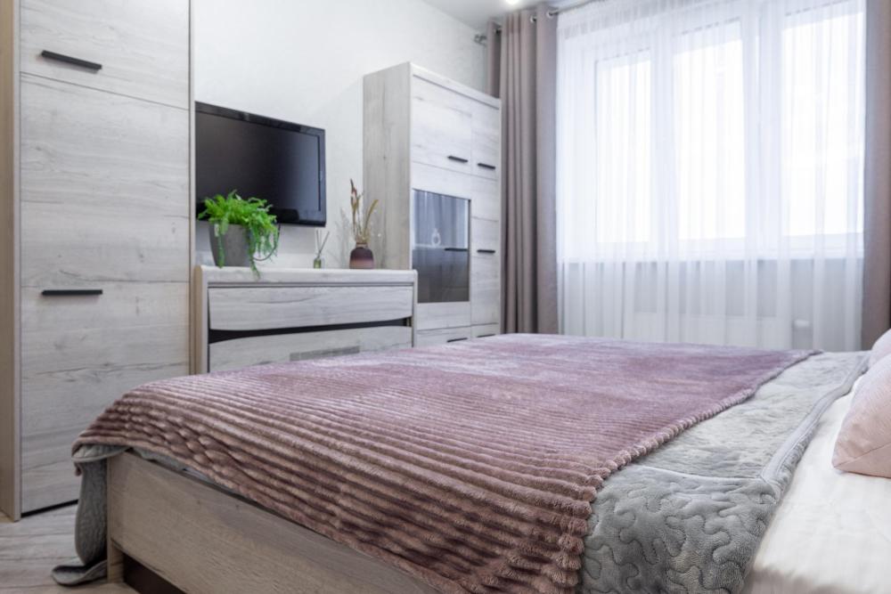 Апартаменты в новом жилом комплексе ЖК "Весна". Квартира отлично подойдёт для гостей путешествующих семьёй. Комфортное проживание 2+2. В квартире имеется все необходимое для комфортного проживания: двуспальная кровать, раскладной диван, чистое постельное белье, полотенца, холодильник, кондиционер, посуда, кабельное TV, WI-FI.