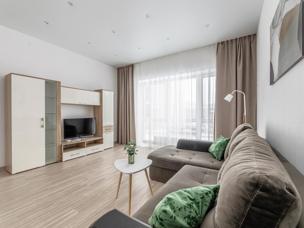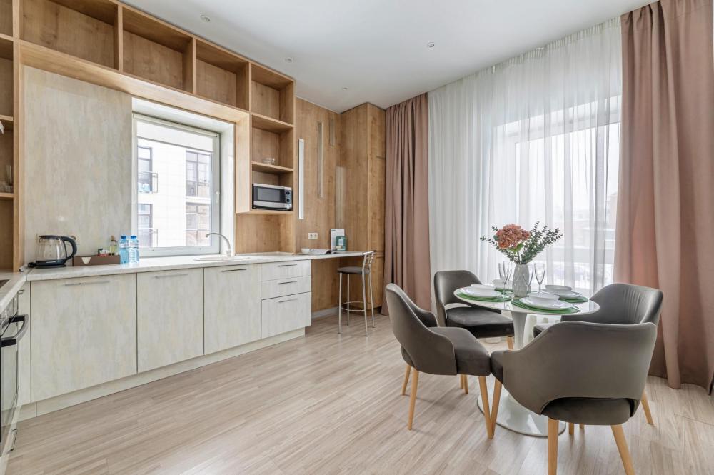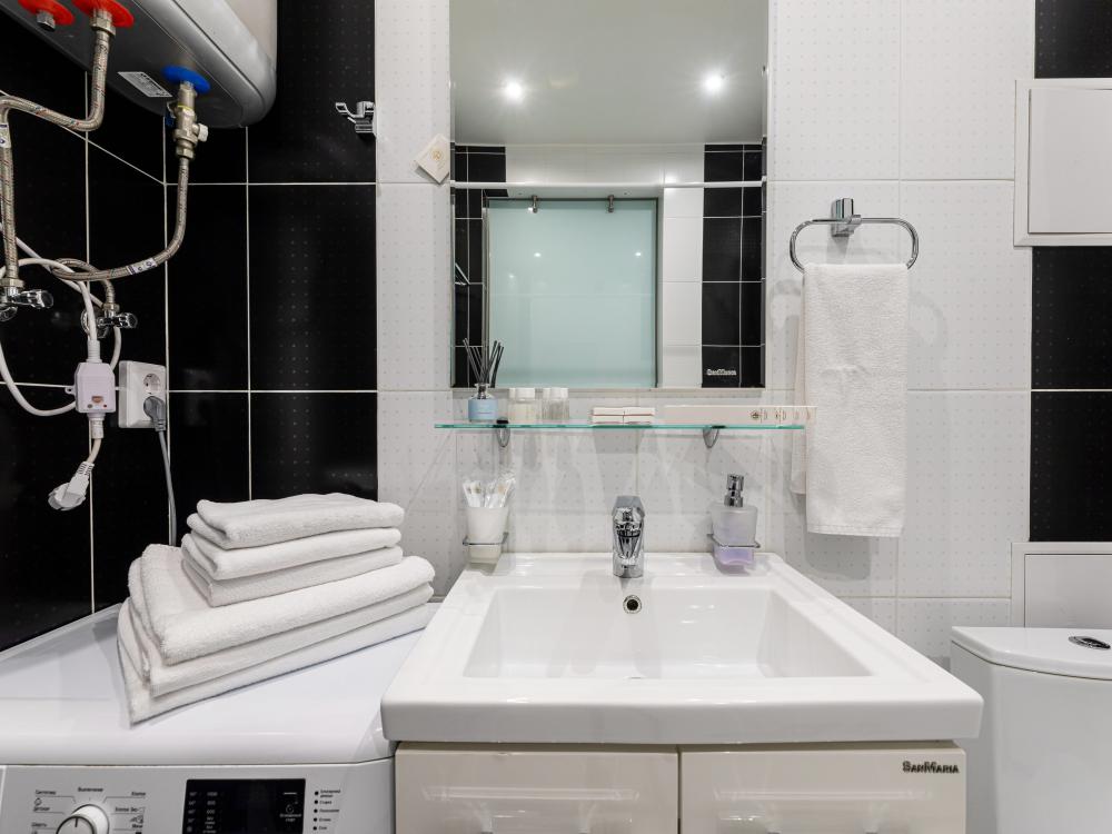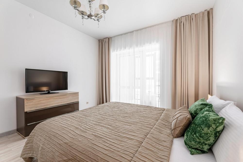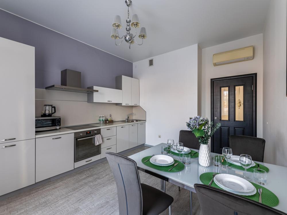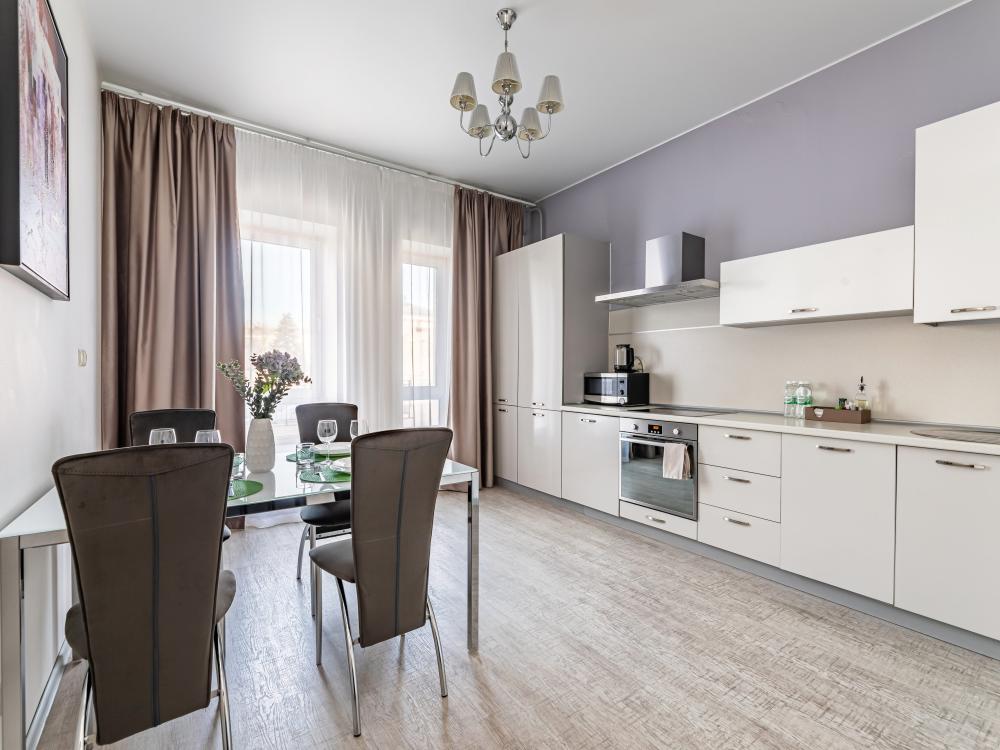 Современные стильные апартаменты с абсолютно новым ремонтом состоят из спальни и полностью оборудованной кухни. В квартире имеется все необходимое для комфортного проживания всей семьи. Возможно размещение до 4-х человек. Полное оснащение бытовой техникой - стиральная машина, микроволновка, чайник, варочная панель, духовка, вытяжка, встроенный холодильник и утюг с гладильной доской; Телевизор с плоским экраном и кабельным телевидением, бесплатный Wi-Fi с высокой скоростью. На кухне выделена зона отдыха - уютный диванчик, удобные мягкие стулья. В ванной комнате с ванной имеется: полотенцесушитель, фен, гель для душа, шампунь. Свежее постельное белье и полотенца для каждого гостя. Во дворе есть детская площадка, в шаговой доступности любые магазины, кафе и рестораны, и все основные достопримечательности города! Уборка и смена постельного белья и полотенец (уборка 700р, смена постельного белья 800р и полотенец 500р), капсульный порошок 1 шт/100 руб. Подземный паркинг - 1000 руб. Будем рады видеть Вас!