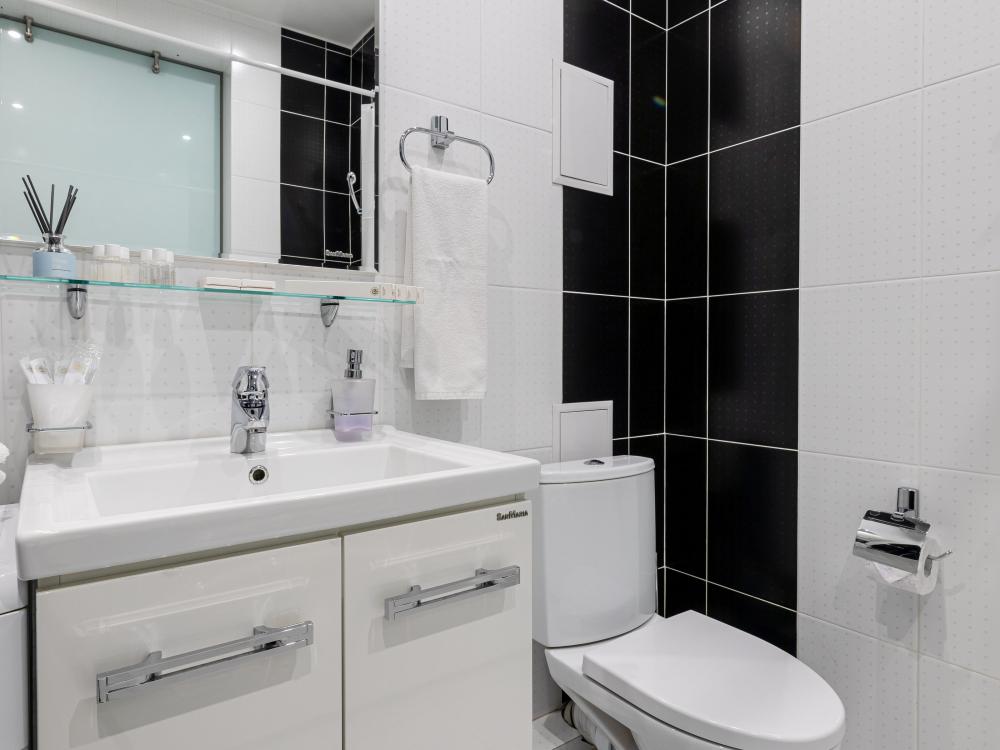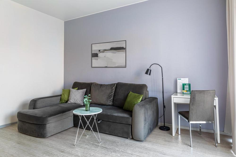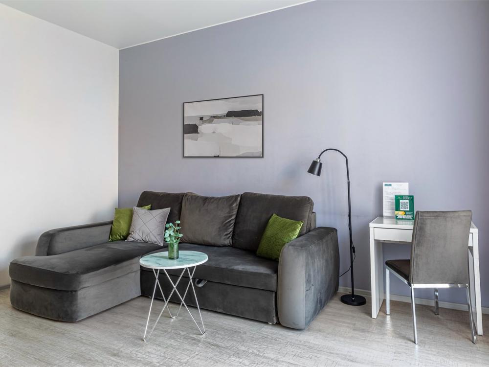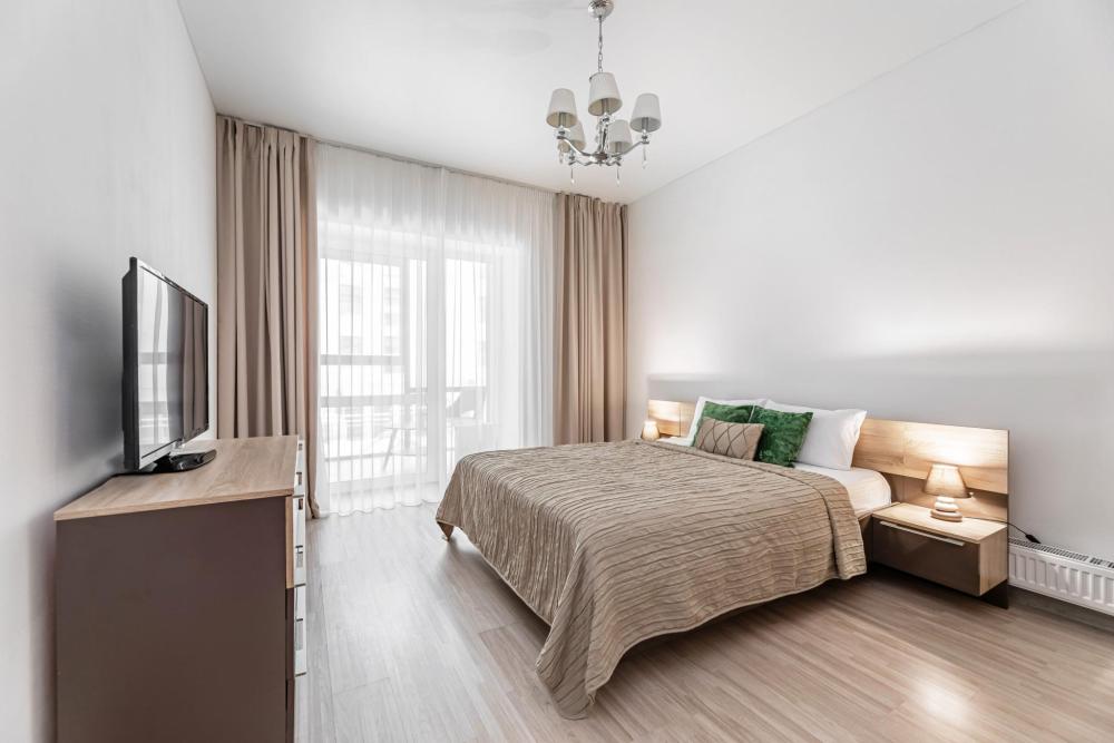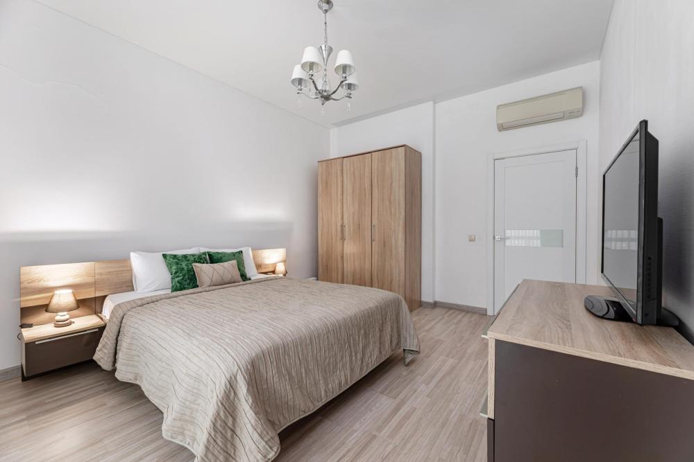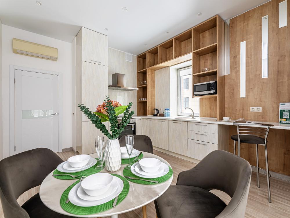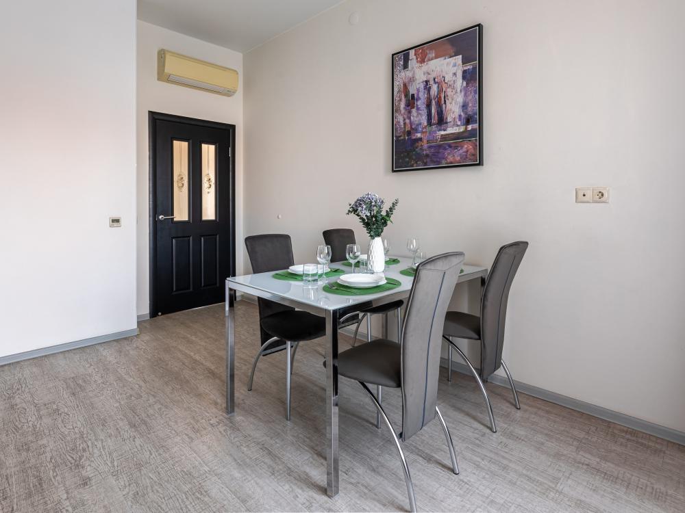 Современные стильные апартаменты с абсолютно новым ремонтом состоят из спальни и полностью оборудованной кухни. В квартире имеется все необходимое для комфортного проживания всей семьи. Возможно размещение до 4-х человек. Полное оснащение бытовой техникой - стиральная машина, микроволновка, чайник, варочная панель, духовка, вытяжка, встроенный холодильник и утюг с гладильной доской; Телевизор с плоским экраном и кабельным телевидением, бесплатный Wi-Fi с высокой скоростью. На кухне выделена зона отдыха - уютный диванчик, удобные мягкие стулья. В ванной комнате с ванной имеется: полотенцесушитель, фен, гель для душа, шампунь. Свежее постельное белье и полотенца для каждого гостя. Во дворе есть детская площадка, в шаговой доступности любые магазины, кафе и рестораны, и все основные достопримечательности города! Уборка и смена постельного белья и полотенец (уборка 700р, смена постельного белья 800р и полотенец 500р), капсульный порошок 1 шт/100 руб. Подземный паркинг - 1000 руб. Будем рады видеть Вас!