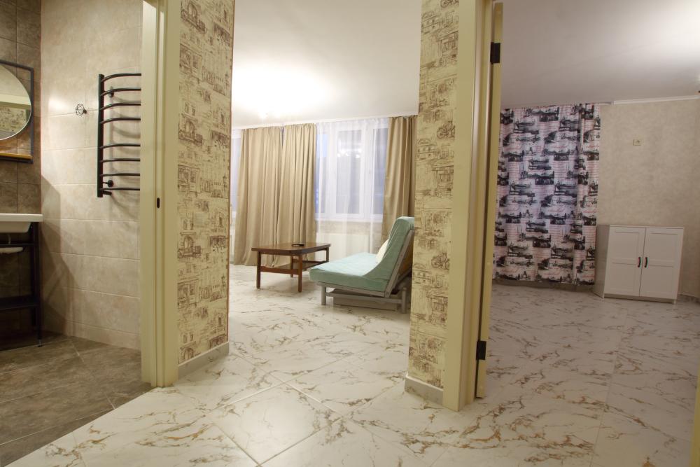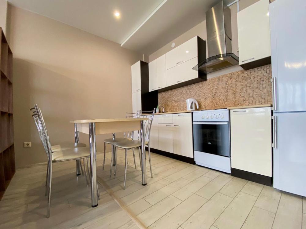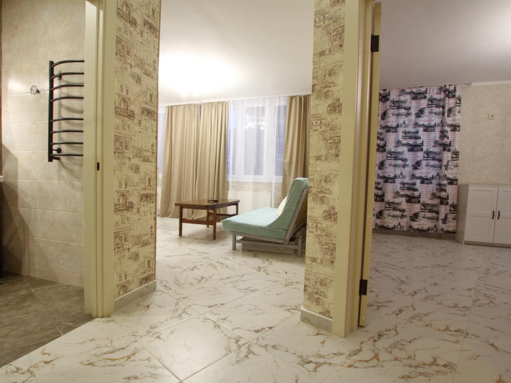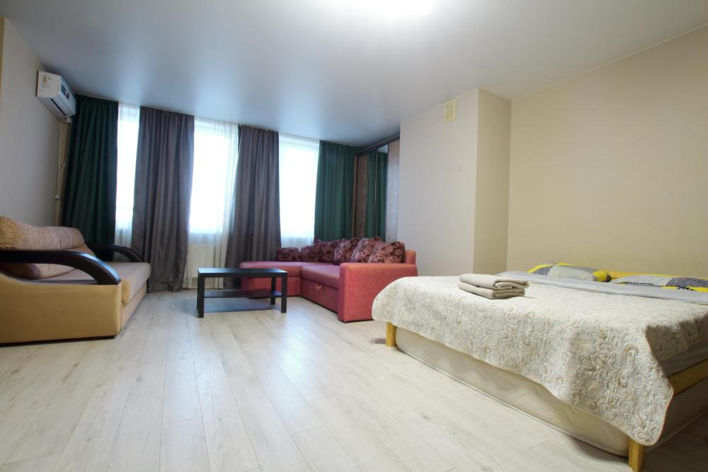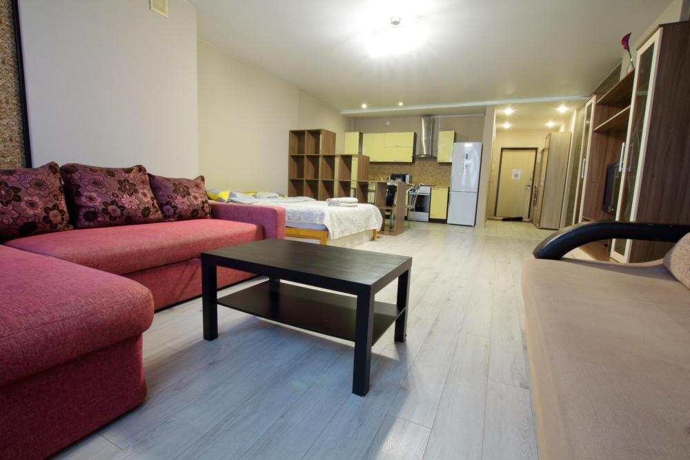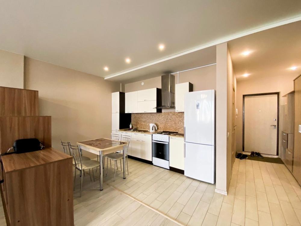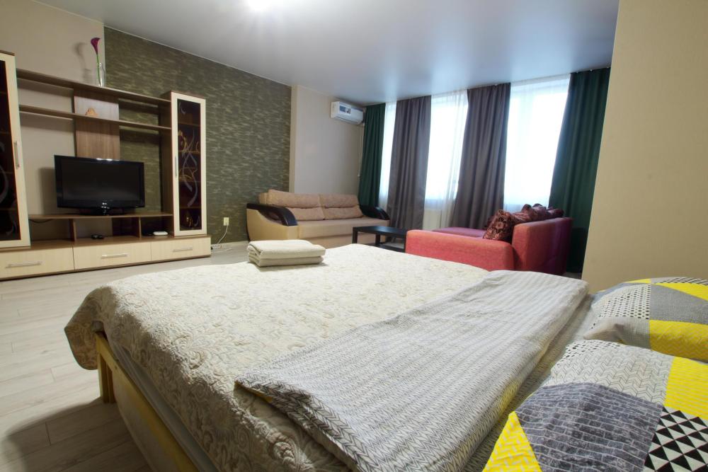 Большая однокомнатная квартира формата - студии. Дом новый, в квартире сделан ремонт под «ЕВРО». В квартире есть все необходимое для проживания: Посуда, Постельное белье, Бытовые приборы. Уборка производится после каждого гостя, при длительном проживании уборка проводится по запросу.