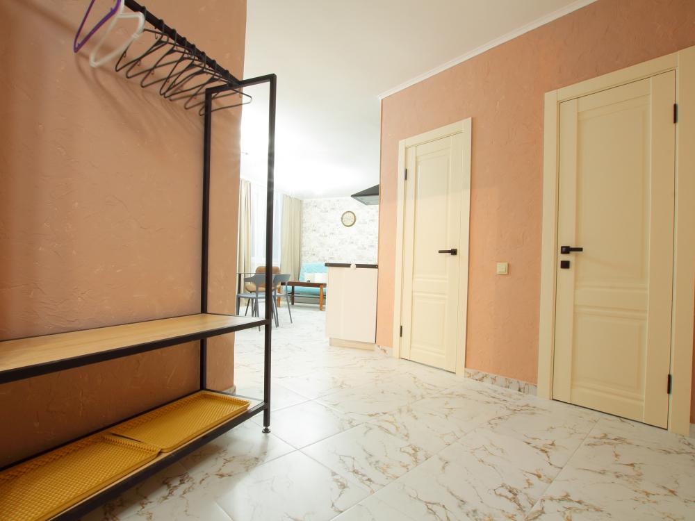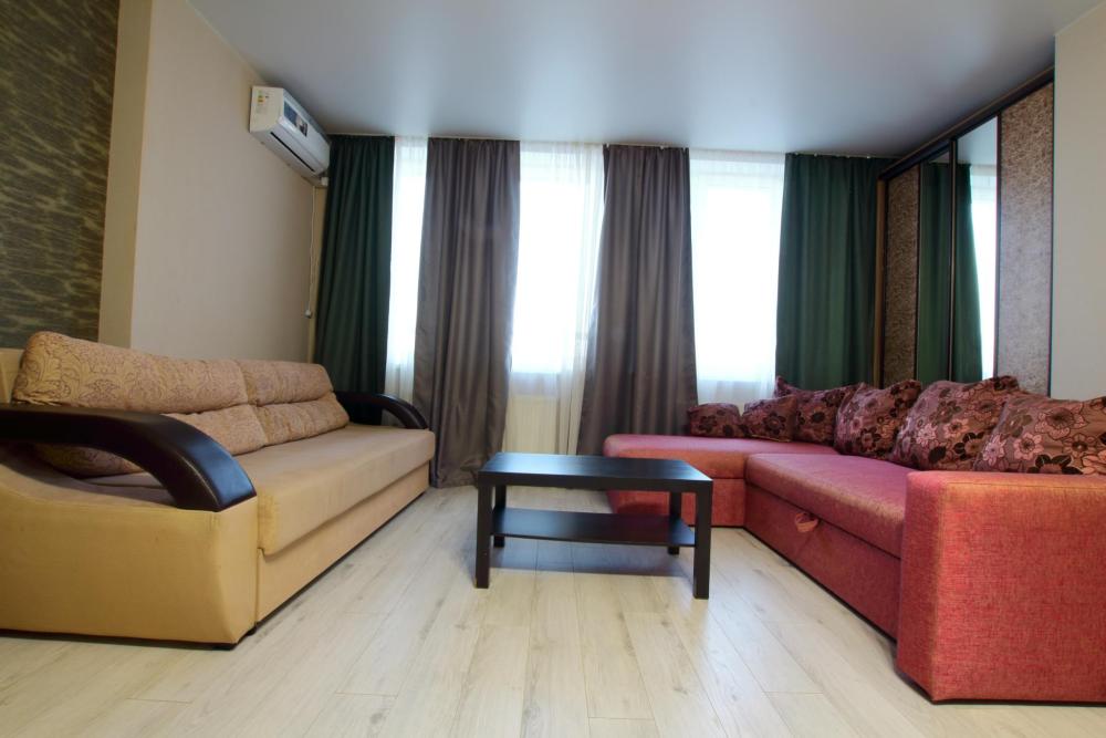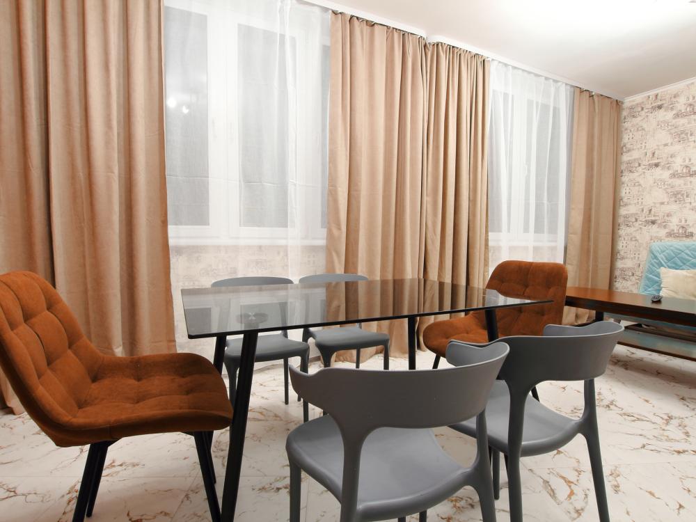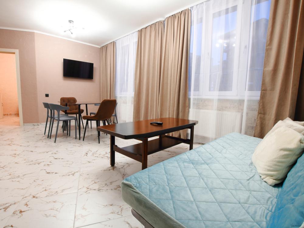 Большая двухкомнатная квартира. Комфортное расположение дома. Дом новый, в квартире сделан ремонт под «ЕВРО». Очень тихое место, во дворе есть большая детская площадка. В квартире есть все необходимое для проживания: Посуда, Постельное белье, Бытовые приборы. Уборка производится после каждого гостя, при длительном проживании уборка проводится по запросу.