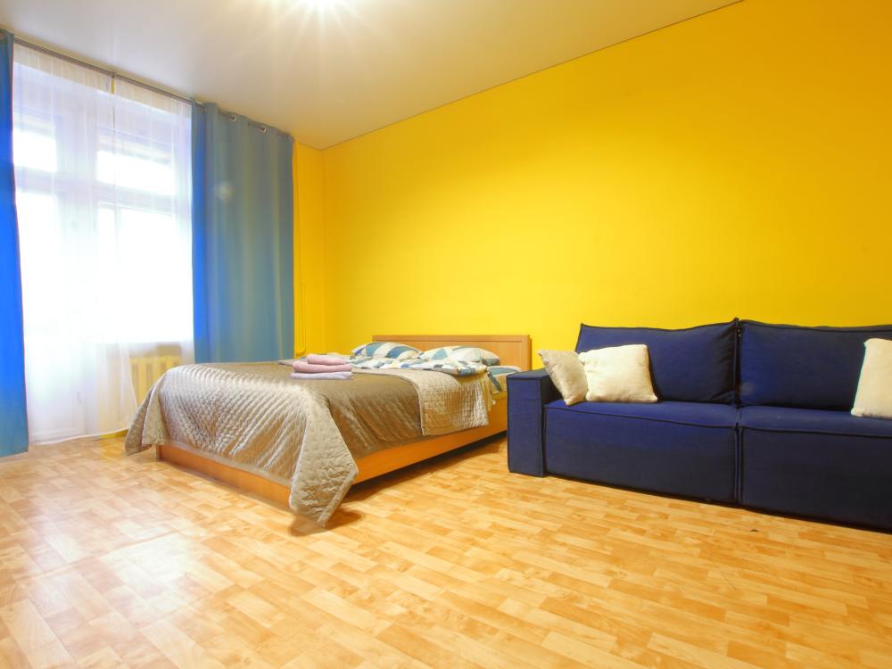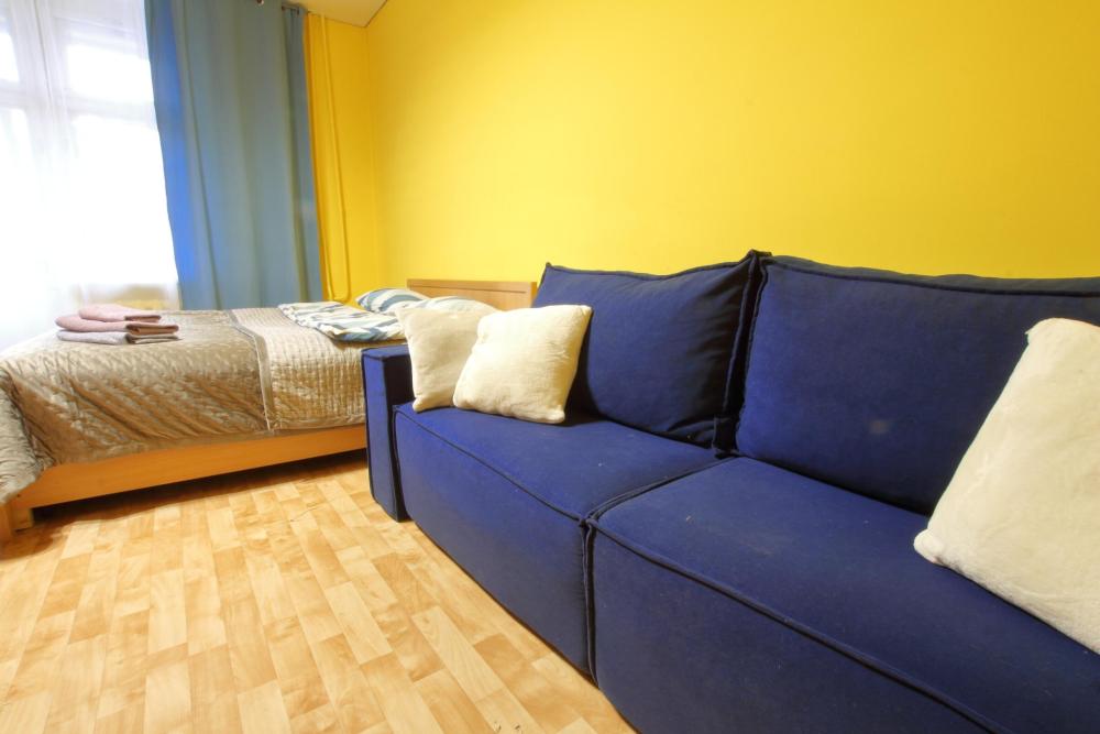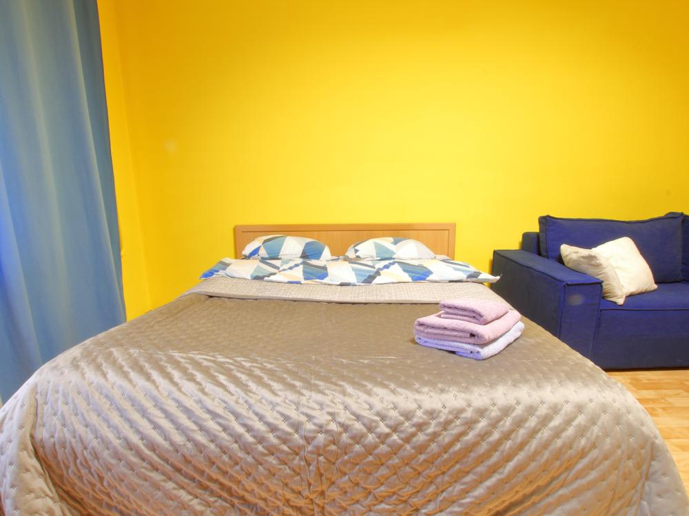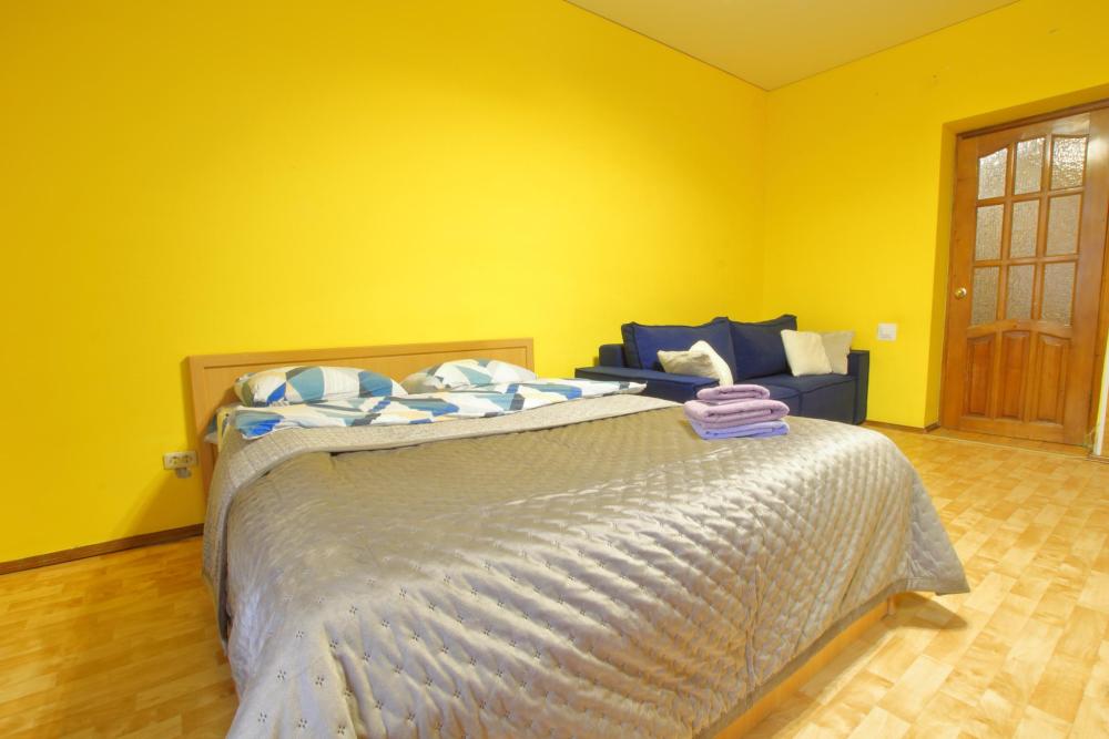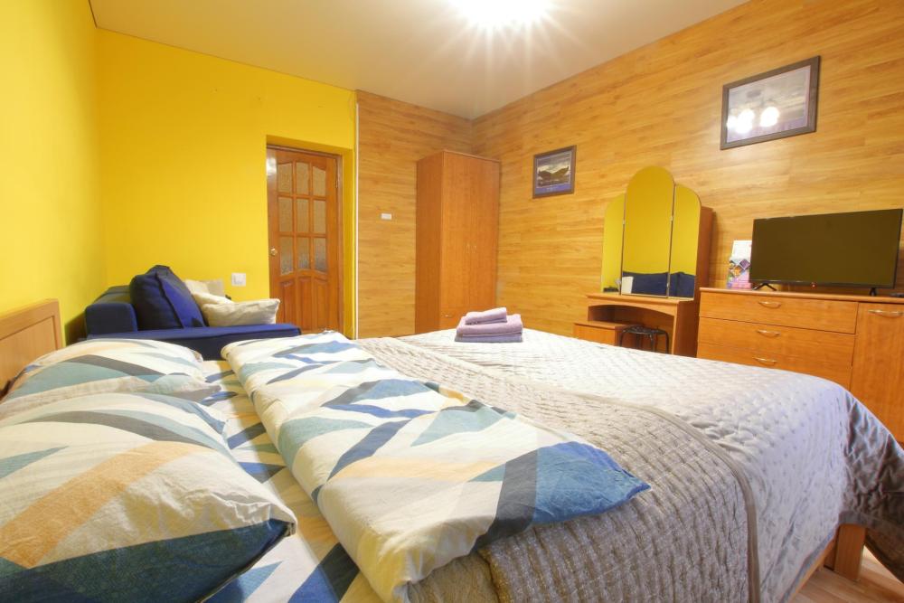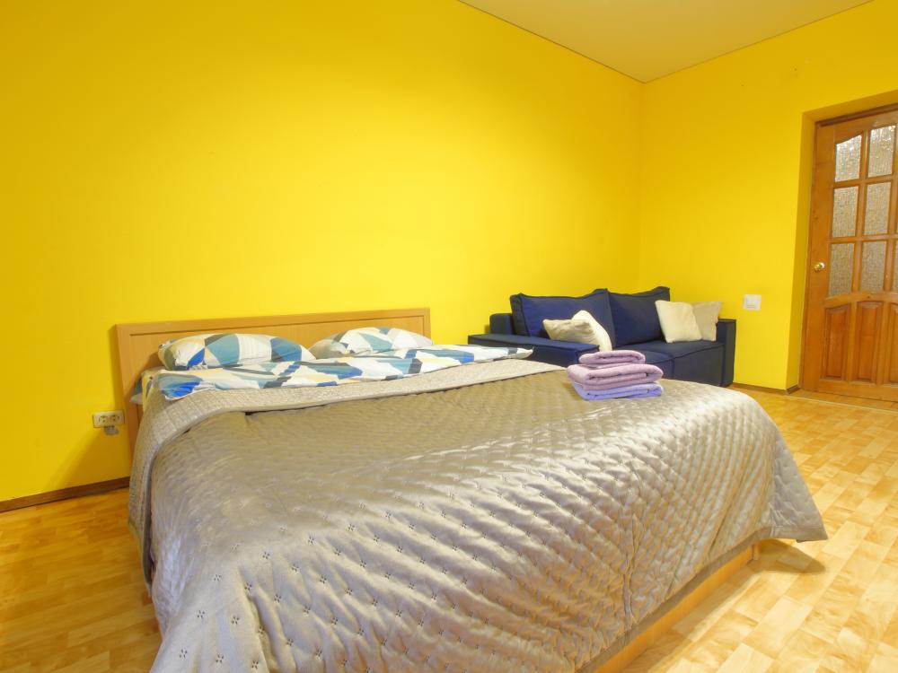 Большая евродвухкомнатная квартира находится на 1 этаже, в комнате находится кровать, на кухне и в коридоре во дивану, которые раскладываются в спальные места. Есть балкон. В квартире есть все необходимое для проживания: Посуда, Постельное белье, Бытовые приборы. Уборка производится после каждого гостя. При длительном проживании уборка проводится по запросу. Квартира расположена в 3 км. От исторического центра города. Удобные подъездные пути. Комфортное расположение дома.