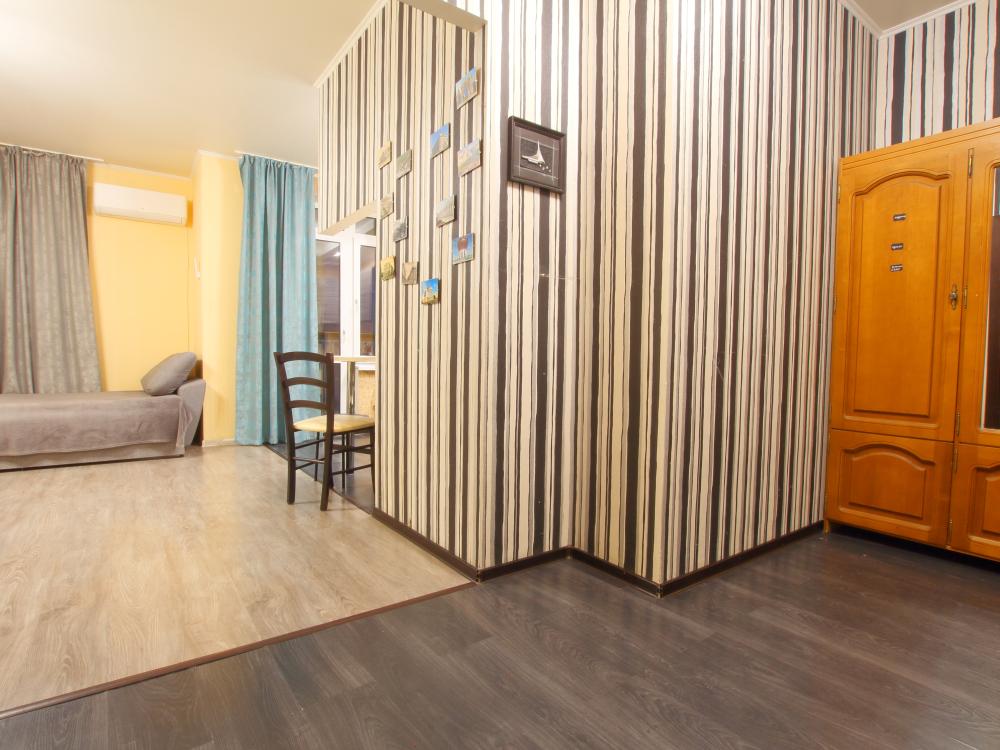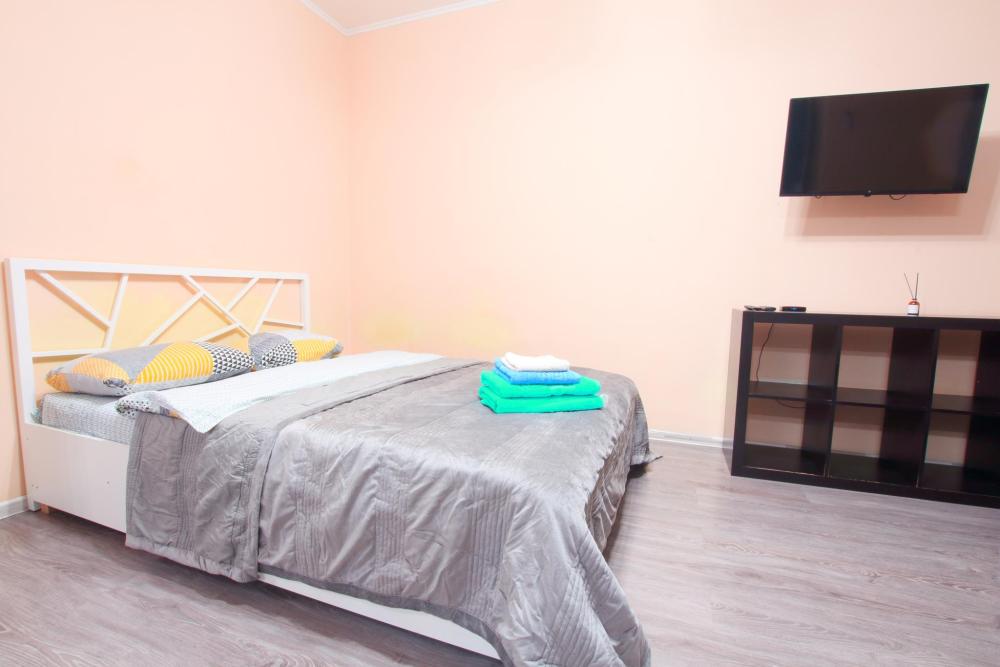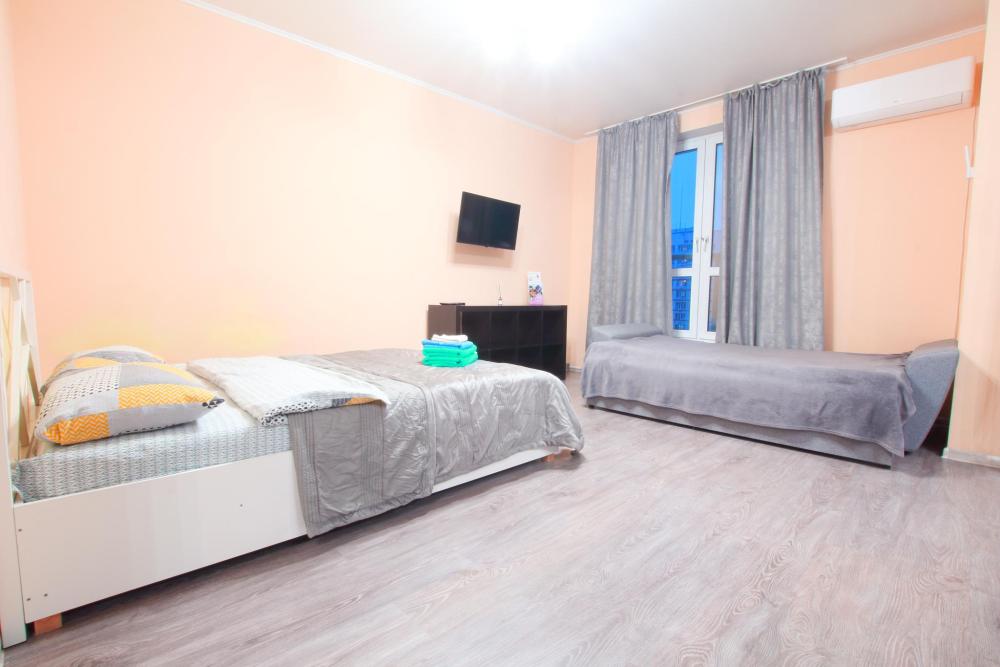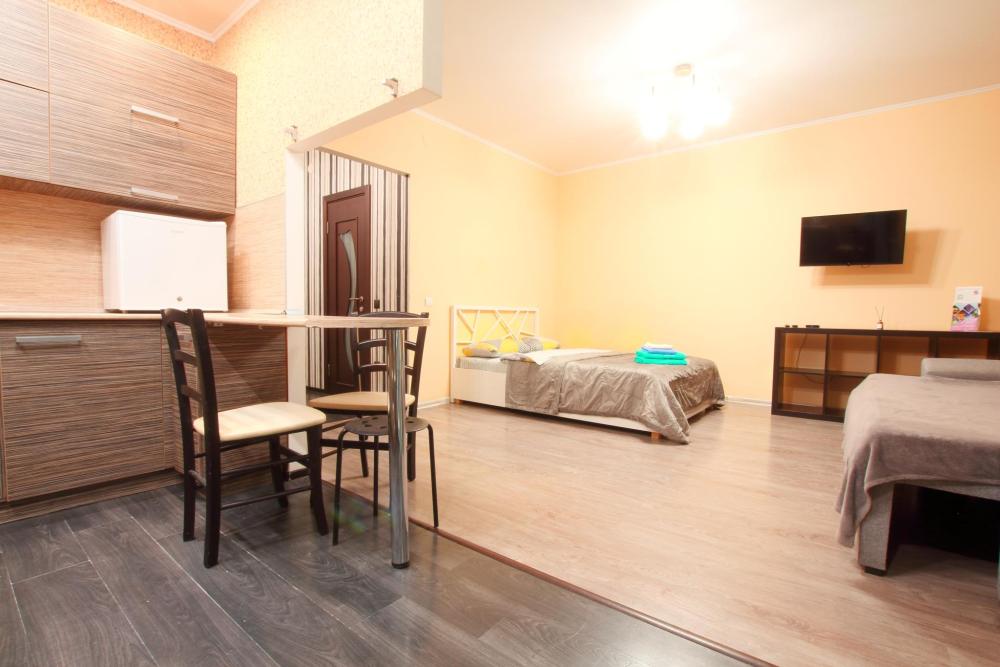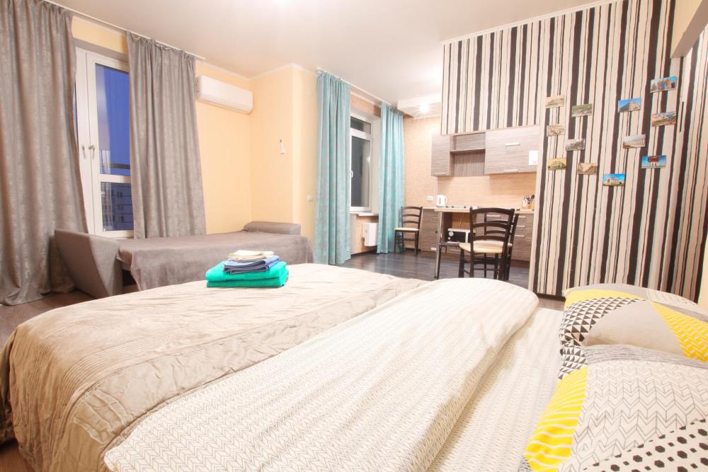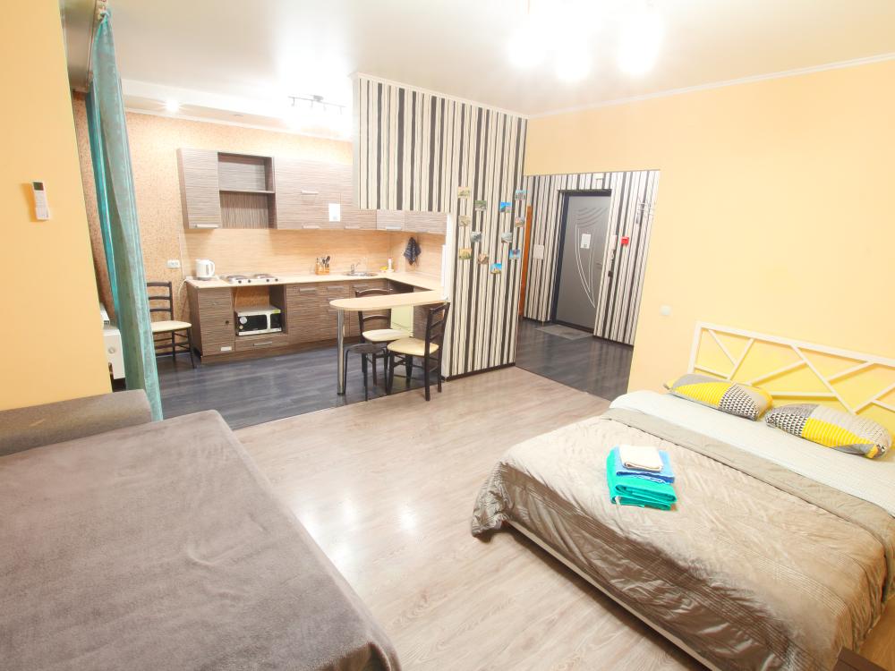 Квартира- студия 45 кв. м. находится на 9 -м этаже, от куда открывается красивый вид на Казань. В квартире есть все необходимое для проживания: Посуда, Постельное белье, Бытовые приборы. Уборка производится после каждого гостя, при длительном проживании уборка проводится по запросу. Есть большой панорамный балкон. Есть подземная стоянка – оплачивается отдельно. Квартира расположена в 1 км. От исторического центра города. Удобные подъездные пути.