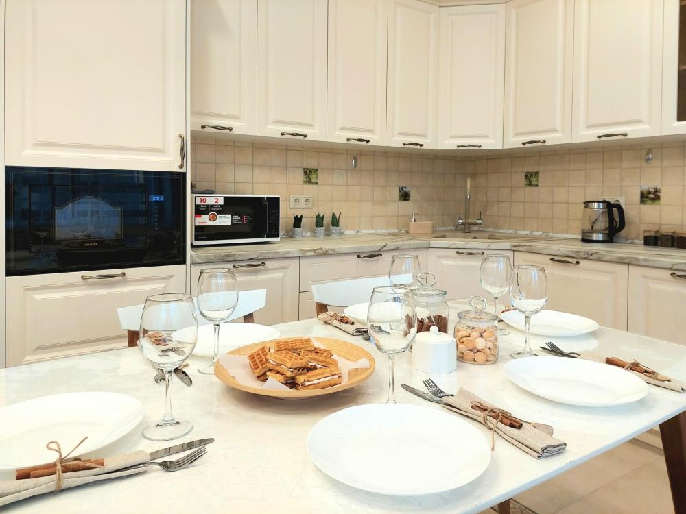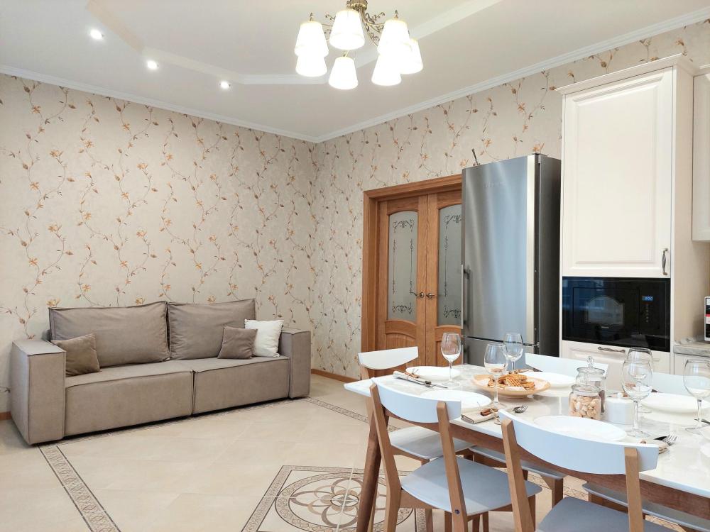 Просторные 3-комнатные апартаменты | Кондиционер | ТВ и Wi-Fi | Полный пакет отчетных документов Апартаменты для 8 гостей uTrip Tulpar на 6 этаже в Советском районе Казани - отличный вариант для большой семьи, компании друзей или командировочных поездок. В квартире имеется просторная лоджия с видами на двор и Ипподром. В квартире есть все необходимое для проживания 8 гостей: – 3 двуспальной кровати и раскладной диван; – гладильная доска, утюг, сушилка; – постельное белье и полотенца с запасными комплектами; – парковка муниципальная во дворе дома; – виды во двор и на улицу. Полностью оборудованная просторная кухня: – газовая плита, духовка, микроволновка, вытяжка, чайник, холодильник, посудомоечная машина; – набор посуды; – чай и кофе для домашнего уюта. Ванная комната: -- 2 санузла – ванна, стиральная машина, фен; – шампунь, мыло. Инфраструктура и достопримечательности: Конный клуб Бассейн Семейный парк А также кафе и рестораны, супермаркеты, аптеки, автобусные остановки рядом с домом. – Гарантия чистоты – Отельный сервис и персональный менеджер Правила проживания: – заезд с 15:00; – выезд до 12:00; – заселение бесконтактное; – курение и вечеринки запрещены; – шум после 22:00 запрещен; – проживание с детьми разрешено; – проживание с животными запрещено; – оплата онлайн; – залог в размере 6 000 руб - вносится до заезда, возвращается после уборки в день выезда. Цена варьируется в зависимости от дат и дней недели - актуальную стоимость проживания смотрите в календаре с выборкой дат. Заселяйтесь и чувствуйте себя как дома в uTrip! Казань ждет