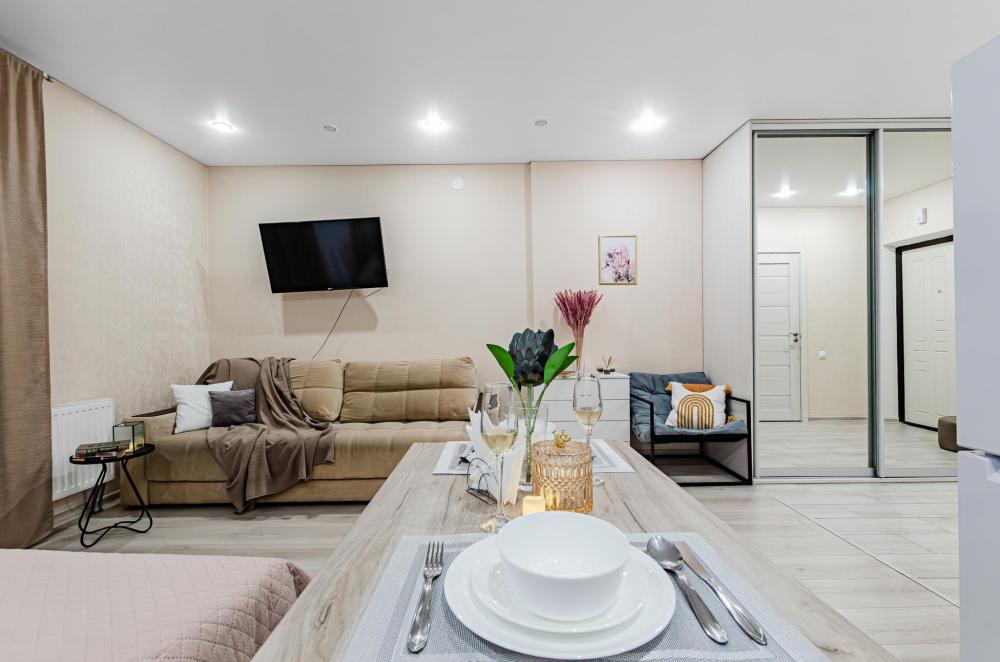 Уютная квартира нaходитcя в ЖК «Сказочный лес»♥️ *Уважаемые гости! Пожалуйста, прочитайте условия проживания, прежде чем оформить бронирование!* Актуальные цены и свободные даты вы найдете в календаре бронирования. Стоимость проживания указана для 2-х гостей. Отдых в столице Республики Татарстан обязательно должен быть комфортным, поэтому предлагаем для бронирования чистую и светлую квартиру с шикарным видом из окна на 15 этаже нового ЖК!❤️ Недалеко находится: РКБ, Термальный комплекс «Пляж», Kazan Expo, ТД Порт, Академия тенниса, -Аэропорт в 15 минутах - До центра 10-15 минут -ДРКБ в 5 минутах О квартире: ⁃ 4 спальных места (двуспальная кровать 160/200 и удобный диван 160/200) - скоростной интернет (wi-fi), кабельное TV - вся необходимая техника и посуда (стиральная машинка,телевизор,электрическая плита,духовой шкаф,микроволновка, холодильник, чайник, утюг, фен) ⁃ предметы личной гигиены для каждого гостя: три разноразмерных полотенца, гель для душа, шампунь.. ⁃ посуда: сковородка, кастрюля (3 литра), чашки, бокалы для вина, стаканы, тарелки, столовые приборы, штопор и прочие нужные кухонные предметы. Наши правила: ⁃ Заезд с 14 / выезд до 12 *ранний заезд и поздний выезд возможны - обговаривается отдельно ⁃ Мы просим вас внести залог в размере 2000 рублей. Залог возвращается в полном объёме после выезда и уборки апартаментов, при сохранности имущества и соблюдении правил проживания. ⁃ В квартире ЗАПРЕЩЕНО: курение (сигарет/кальяна), любые шумные мероприятия и вечеринки. - В случае жалоб от соседей или правоохранительных органов - выселение без возврата депозита. ⁃ Заселение возможно только по паспорту и с заключением цифрового договора. Если у вас остались вопросы, мы с радостью на них ответим! Будем рады видеть вас среди гостей прекрасного города Казани!