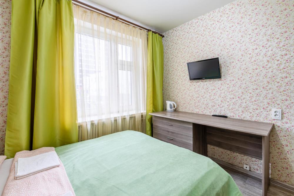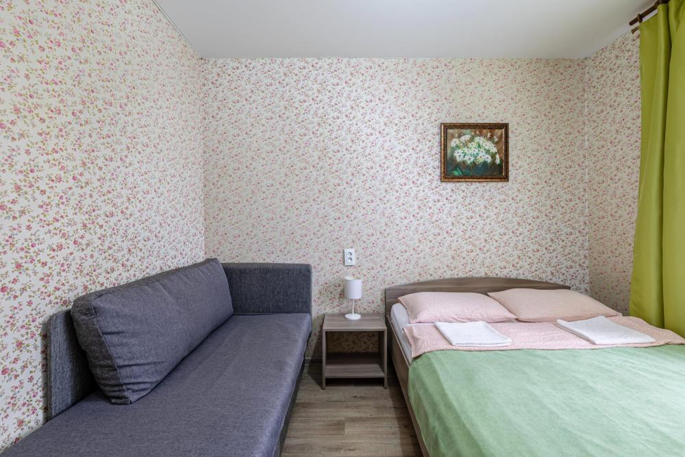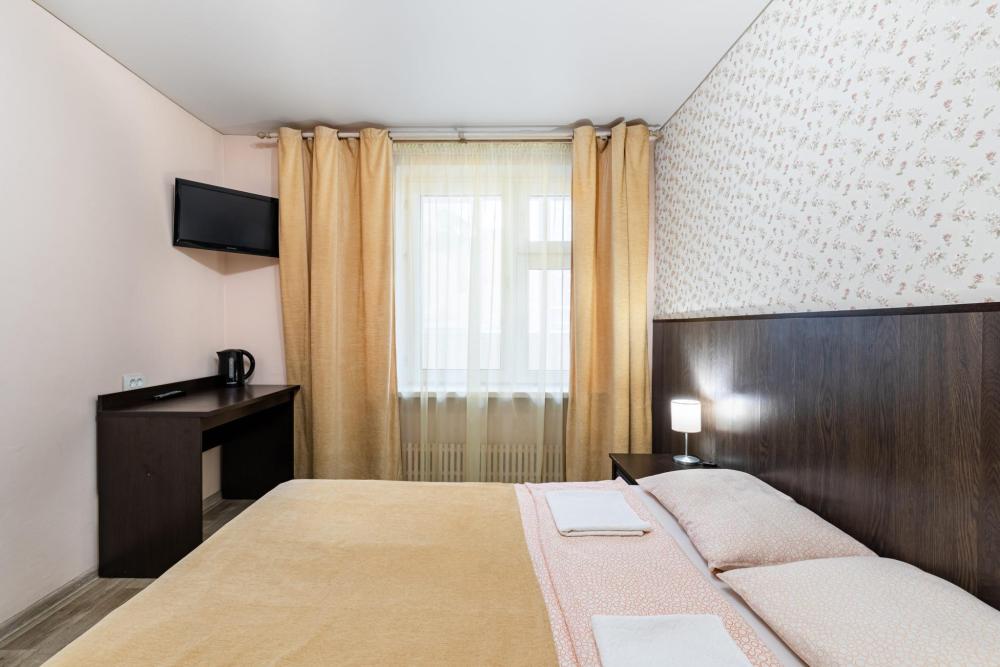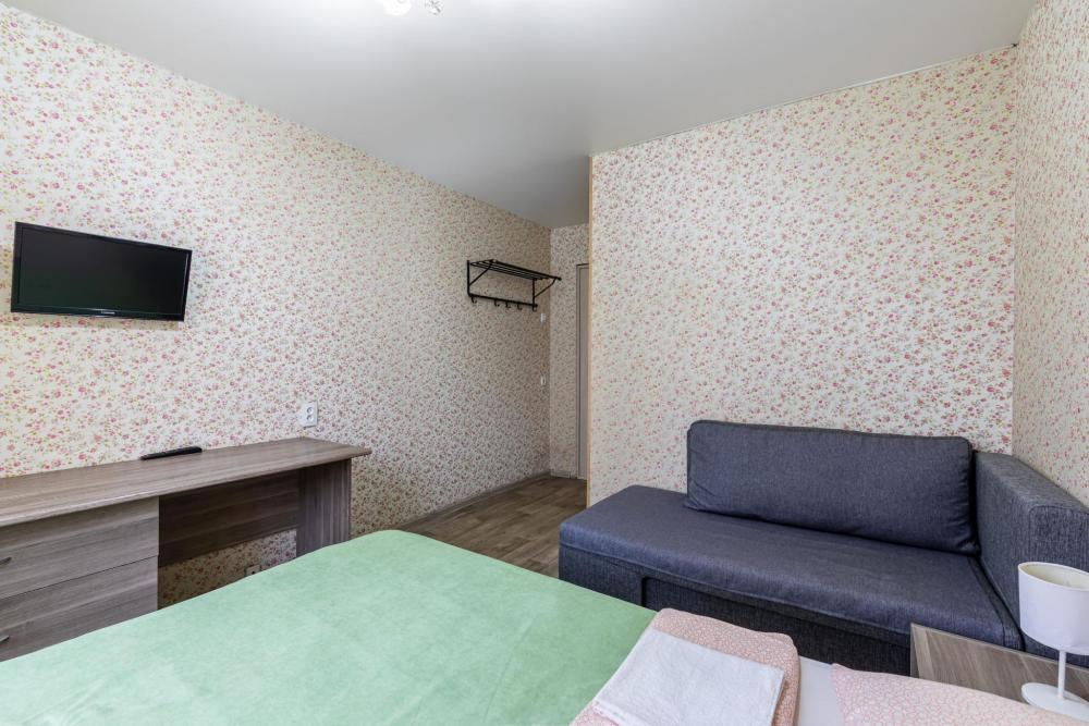 В комнате имеется: двуспальная кровать, одноместный диван-кровать, сан.узел (душ, туалет, раковина), письменный стол, комод, постельное белье и полотенца, зеркало, вешалка, телевизор, чайник, wifi