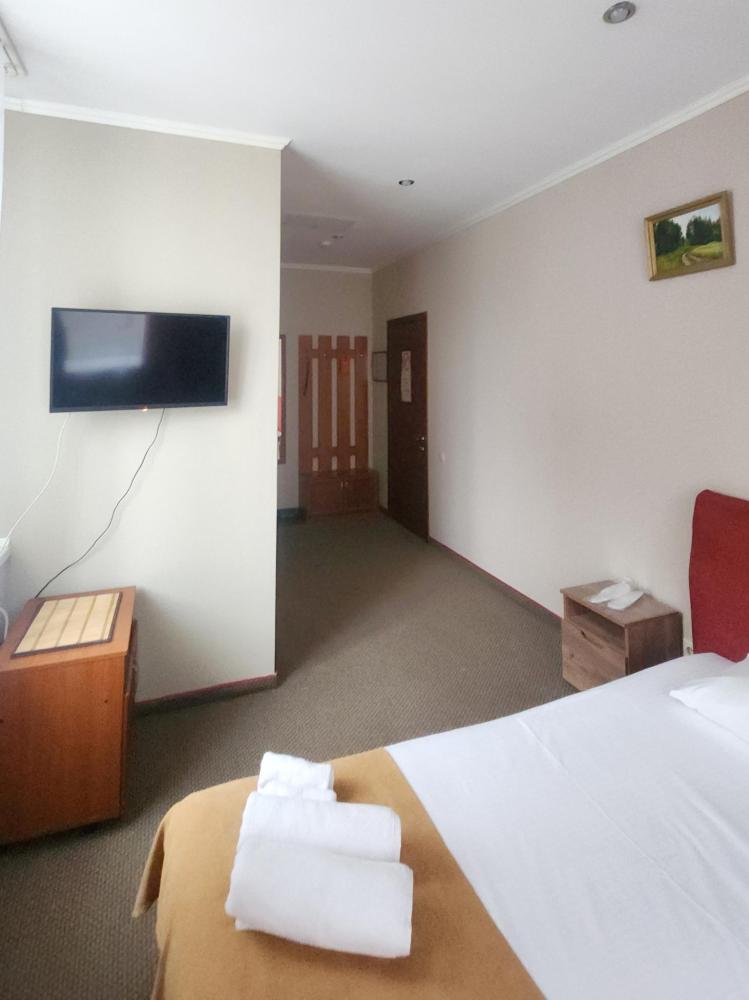 Номер для одного или двоих с большой двуспальной кроватью. В номере есть телевизор, чайник