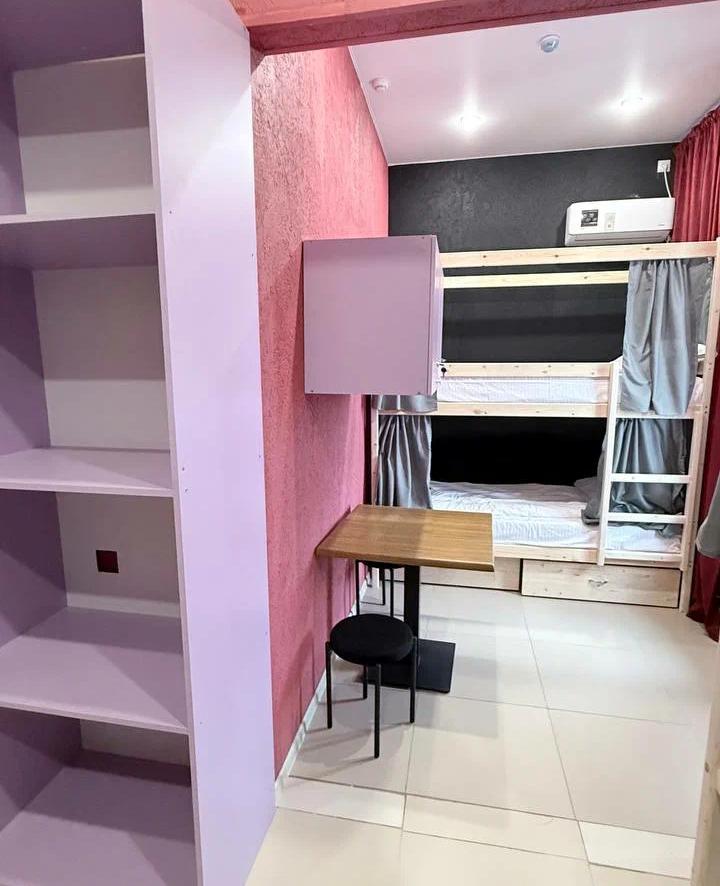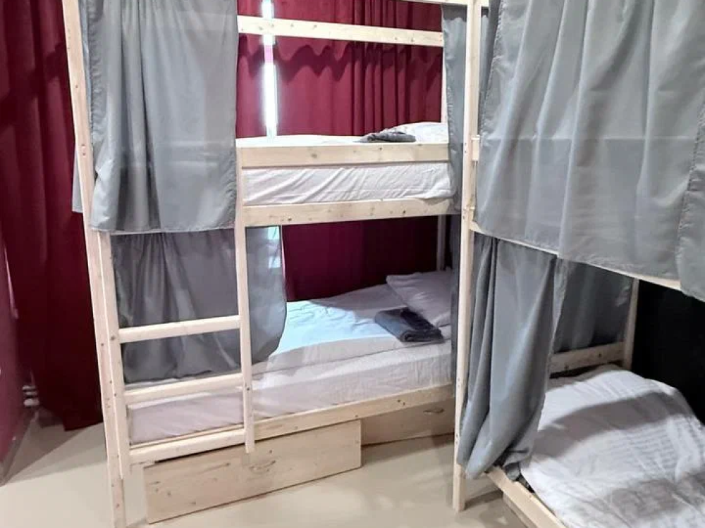 Кровать в общем шестиместном номере для мужчин и женщин площадью 20 кв.м. В номере: 3 двухъярусные кровати, кондиционер, предоставляется постельное белье и полотенца. Общий душ и туалет.