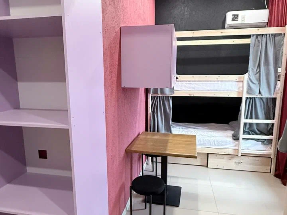 Кровать в общем четырехместном номере для женщин площадью 15 кв.м. В номере: 2 двухъярусные кровати, кондиционер, предоставляется постельное белье и полотенца. Общий душ и туалет.