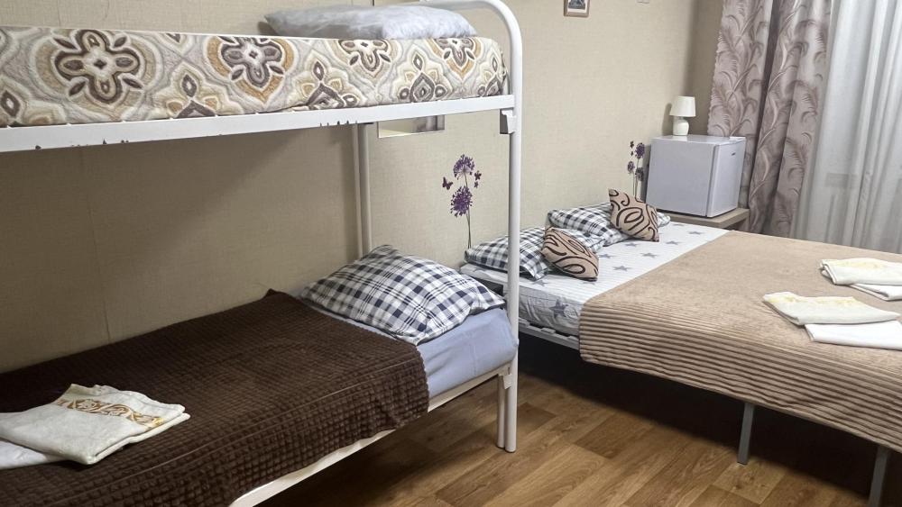 Номер рассчитан на 6 гостей. Удобство номера включает в себя кондиционер, телевизор, холодильник, микроволновую печь, двухспальную кровать и две дополнительные кровати двухъярусные. Душ и туалет общие на этаже.