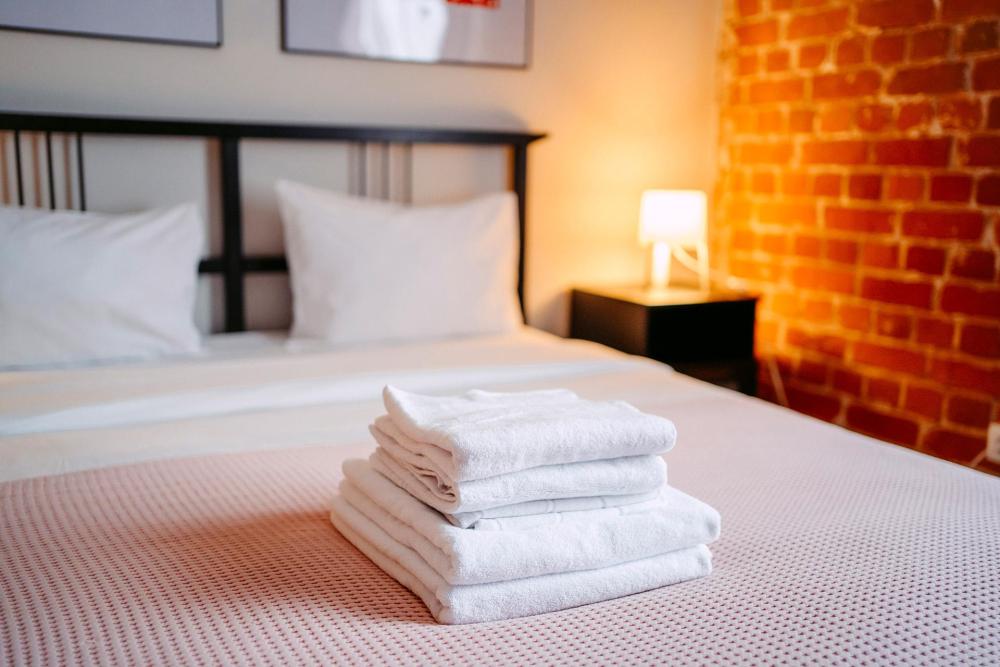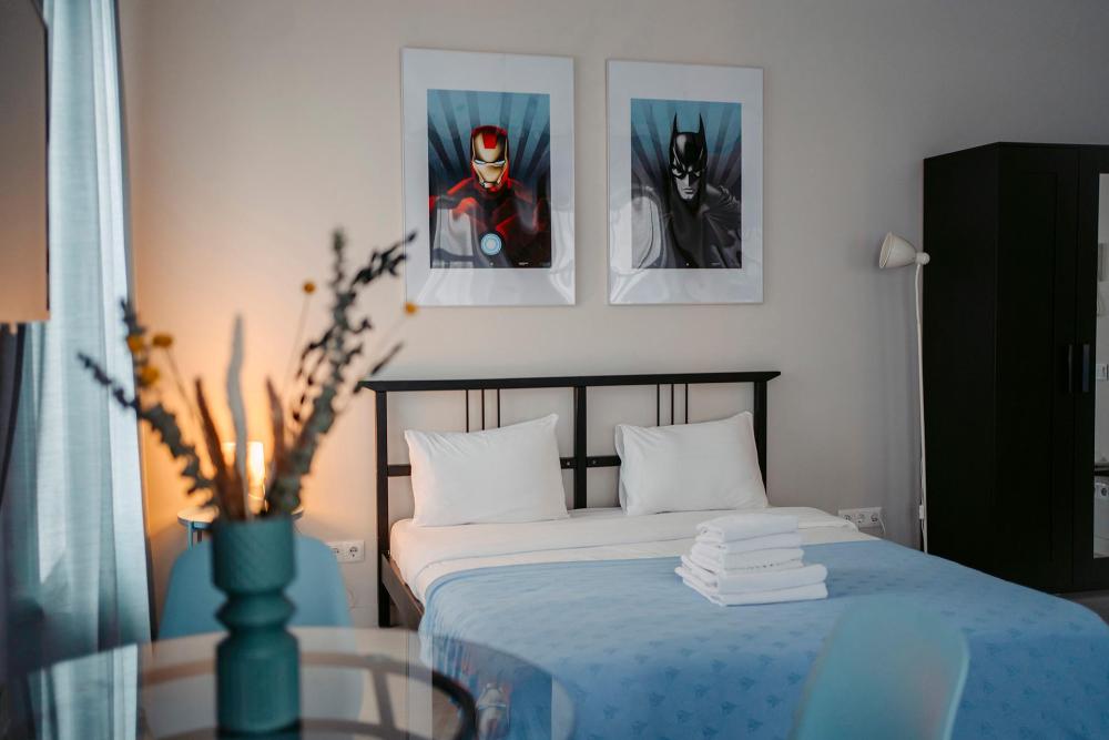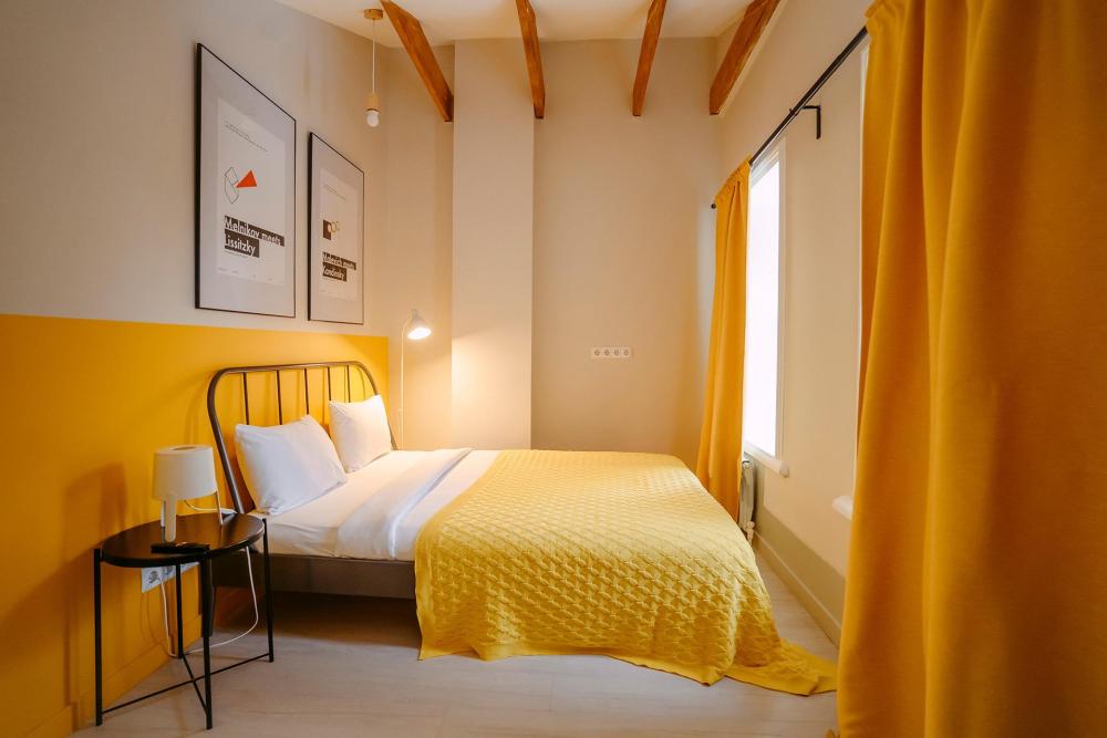 Минималистичные апартаменты с открытым балконом. Двухместный номер без кухонного блока с большой двуспальной кроватью и видом на внутренний дворик. Площадь — 18 кв.м.