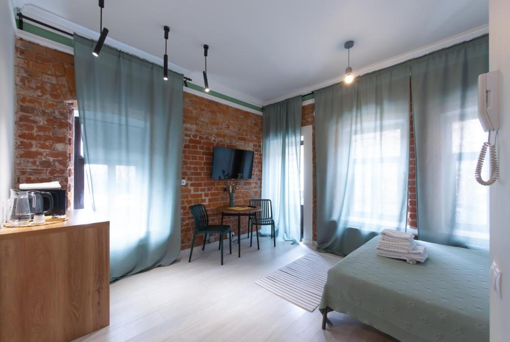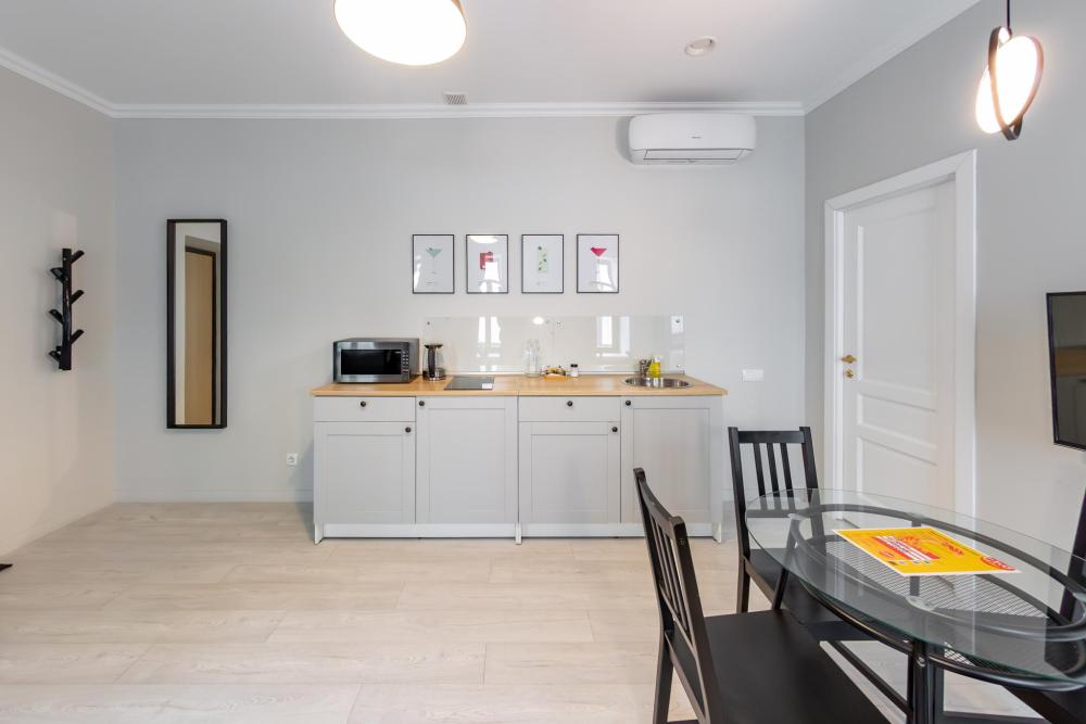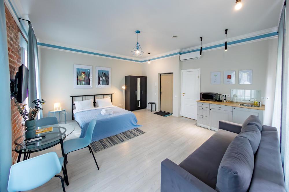 Апартаменты студийного формата с объединенной спальной зоной и кухней-гостиной. Площадь — 40 кв.м.