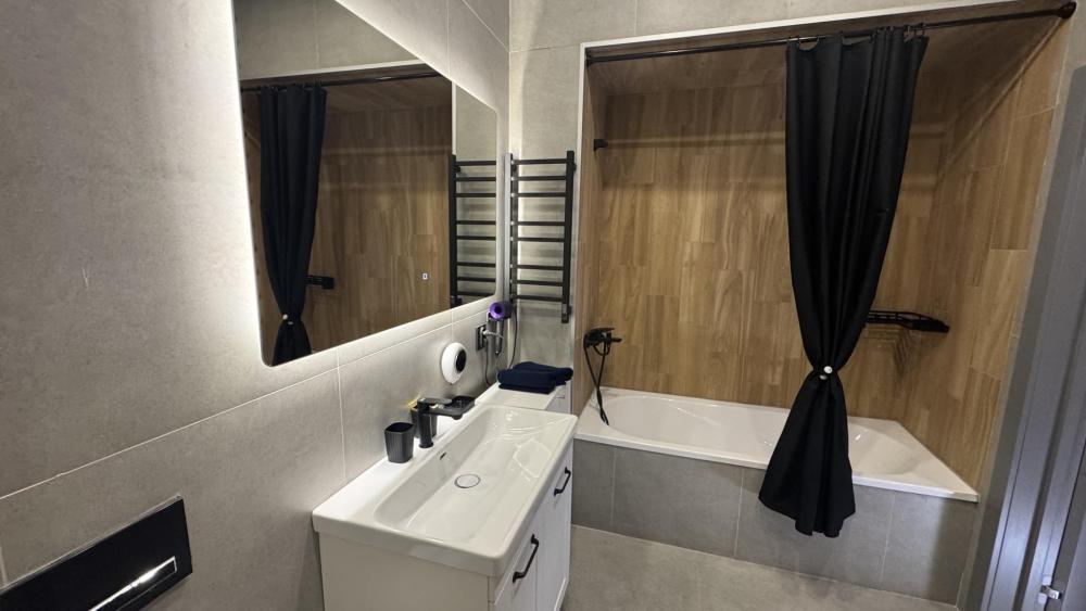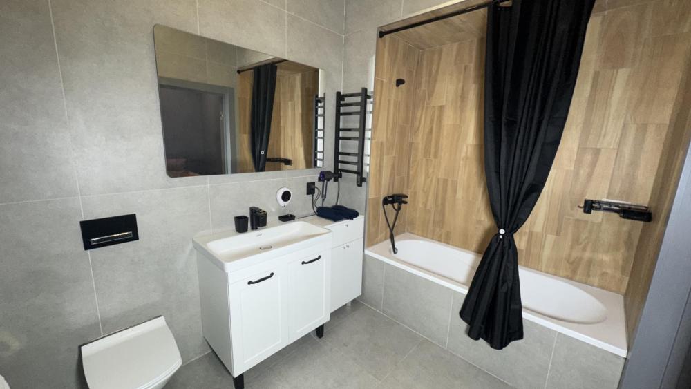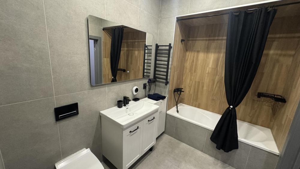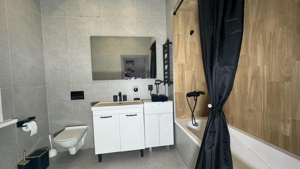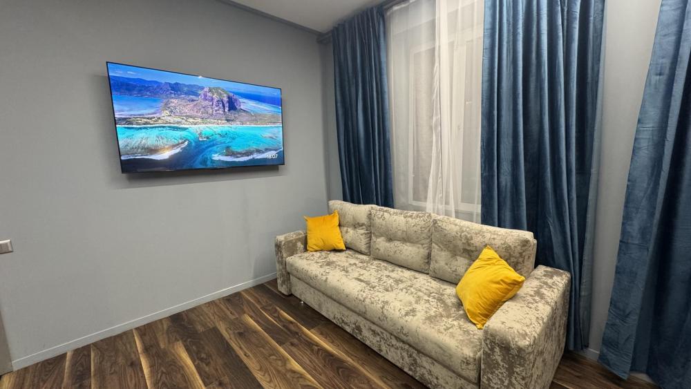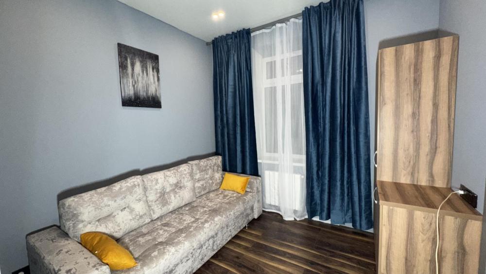 Описание номера «Серый Лофт» для компании до 6 человек в гостинице на ул. Волкова, 52, Казань Расположение: Казань, ул. Волкова, 52 (исторический центр) Идеальное решение для дружеской встречи или семейного отдыха — просторный номер «Серый Лофт», рассчитанный на комфортное размещение компании до 6 человек. Планировка и спальные места: Пространство организовано с умом для максимального удобства: · Два полноразмерных раскладных дивана, обеспечивающие комфортные спальные места. · Просторная двуспальная кровать с ортопедическим матрасом. · Четкое зонирование позволяет с комфортом разместить всех гостей. Дизайн и атмосфера: В оформлении доминирует современная дымчато-серая палитра, создающая стильную, спокойную и нейтральную среду. Ярким контрастным акцентом выступают глубокие синие шторы, добавляющие интерьеру динамики и глубины. Стиль — городской лофт с элементами минимализма. Технологическое оснащение: Номер оснащен всем необходимым для работы и развлечений: · Большой телевизор с диагональю от 65" для кинопросмотров. · Высокоскоростной Wi-Fi по всей территории. · Станция «Алиса» (Яндекс).