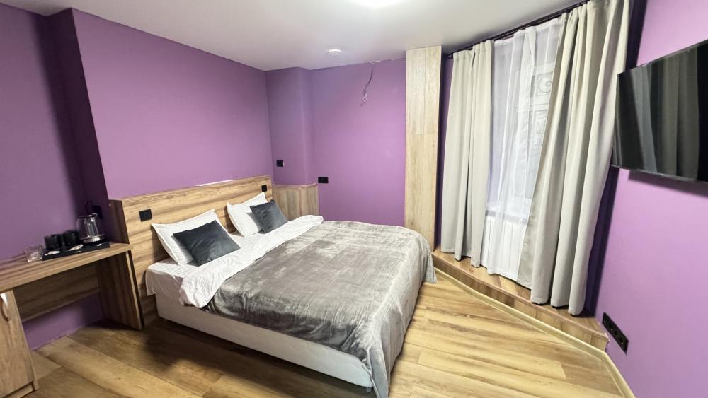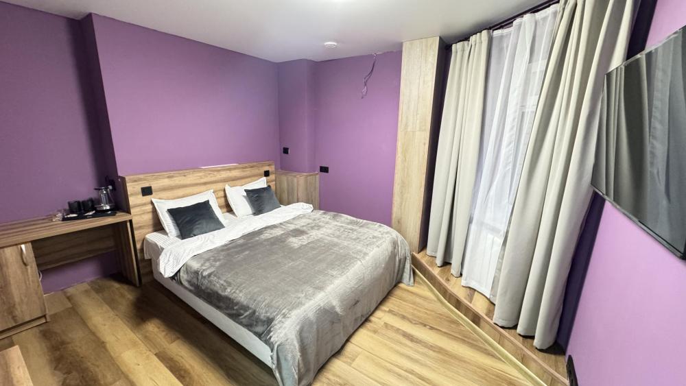 Описание номера «Лавандовый Туман» в гостинице на ул. Волкова, 52, Казань Расположение: Казань, ул. Волкова, 52 (исторический центр) Номер «Лавандовый Туман» создан для гостей, ценящих элегантность, спокойствие и технологический комфорт. Это идеальное убежище для уединенного отдыха после знакомства с динамичной жизнью центра Казани. Атмосфера и дизайн: Нежный лавандовый цвет стен создает в номере атмосферу безмятежности и расслабления. Монохромная элегантность интерьера подчеркнута текстурной игрой: шторы благородного серого оттенка гармонично сочетаются с мягким серым пледом. Такое сочетание пастельного и серого цветов рождает ощущение умиротворения и утонченного стиля. Комфорт и технологии: Мы позаботились о том, чтобы ваше пребывание было максимально удобным. В номер установлен современный телевизор для ваших любимых шоу и фильмов. К вашим услугам — стабильный высокоскоростной Wi-Fi. Для создания домашнего уюта в номере есть электрический чайник, чтобы вы в любой момент могли насладиться чашкой горячего чая или кофе. Идеально для: · Путешественников, ищущих спокойной и стильной обстановки. · Гостей, для которых важны технологические удобства и комфорт. · Всех, кто хочет отдохнуть в эстетичном пространстве, навевающем ощущение гармонии.