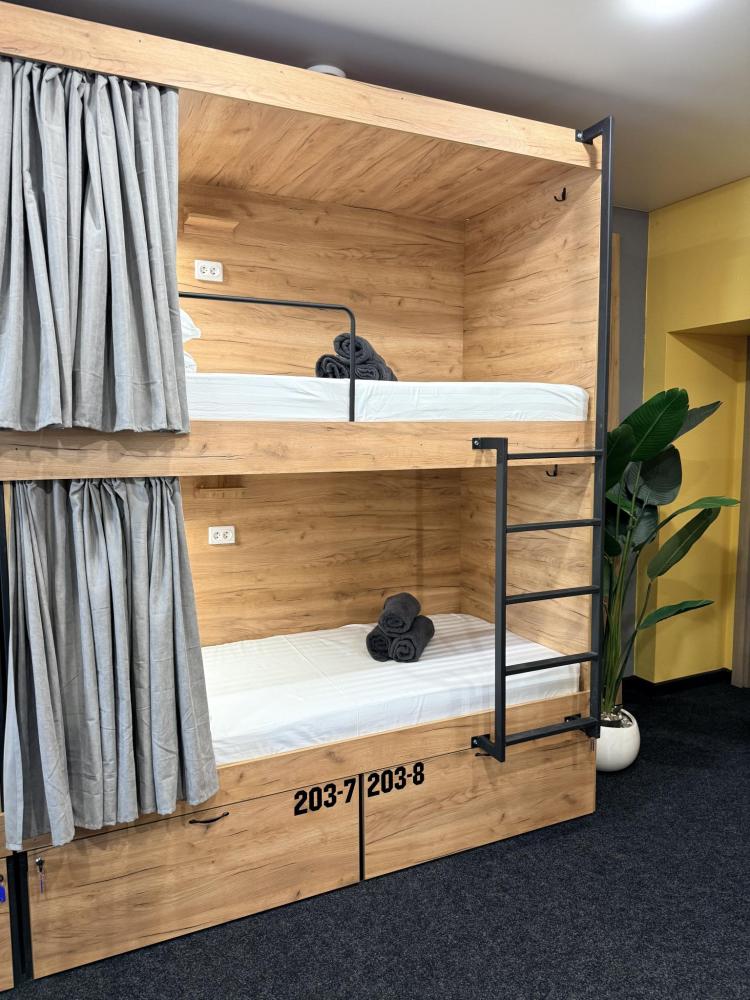 Женский 8-местный номер с кондиционером! У нас уютные двухъярусные кровати со шторками для комфортного пребывания. Все места оборудованы розетками и светильниками для вашего удобства. Также имеются индивидуальные запираемые ящики для безопасного хранения ваших вещей.