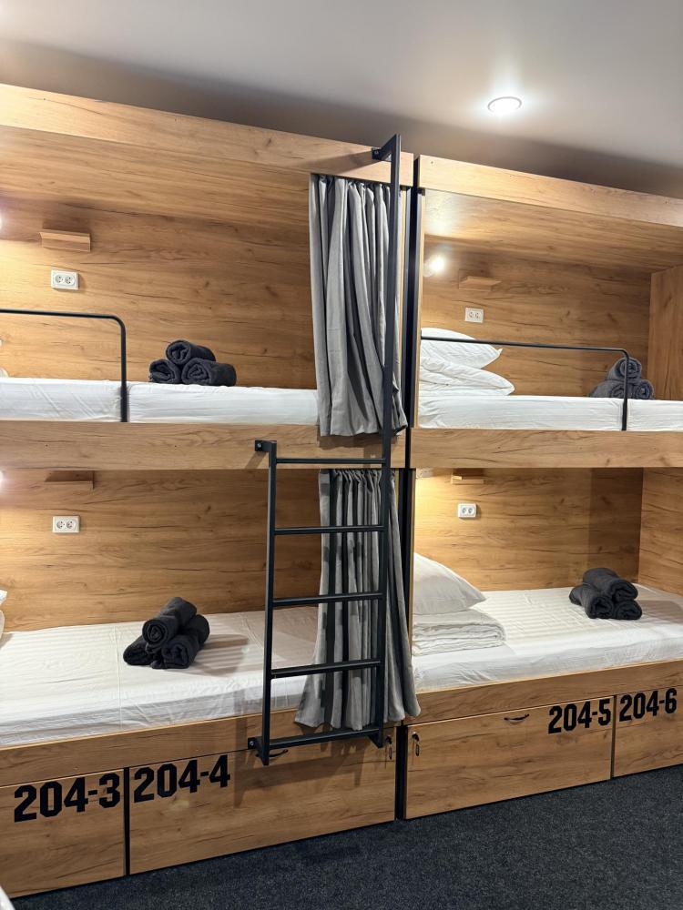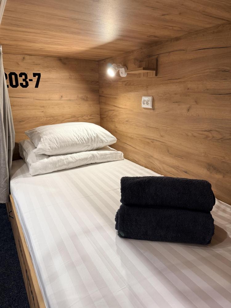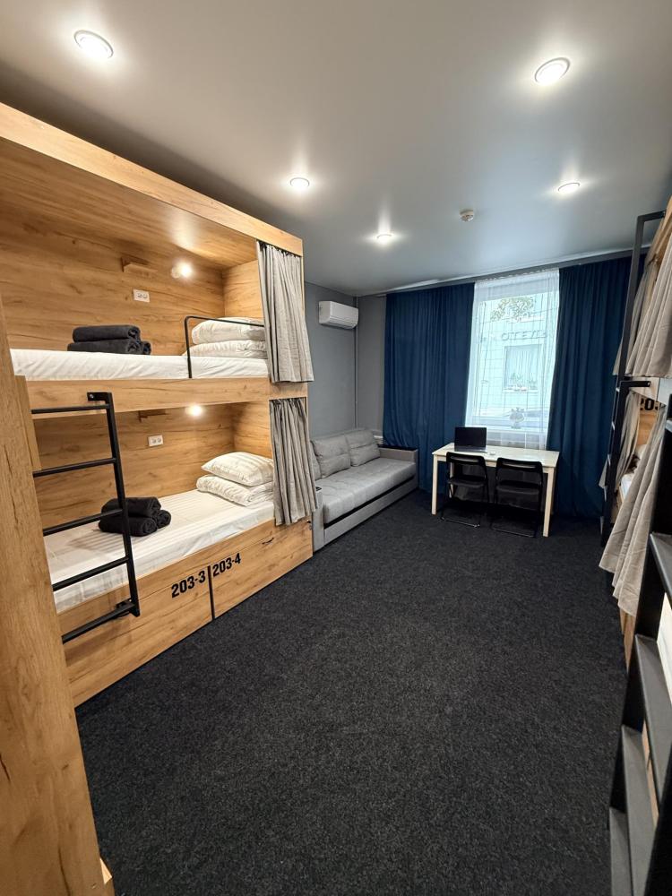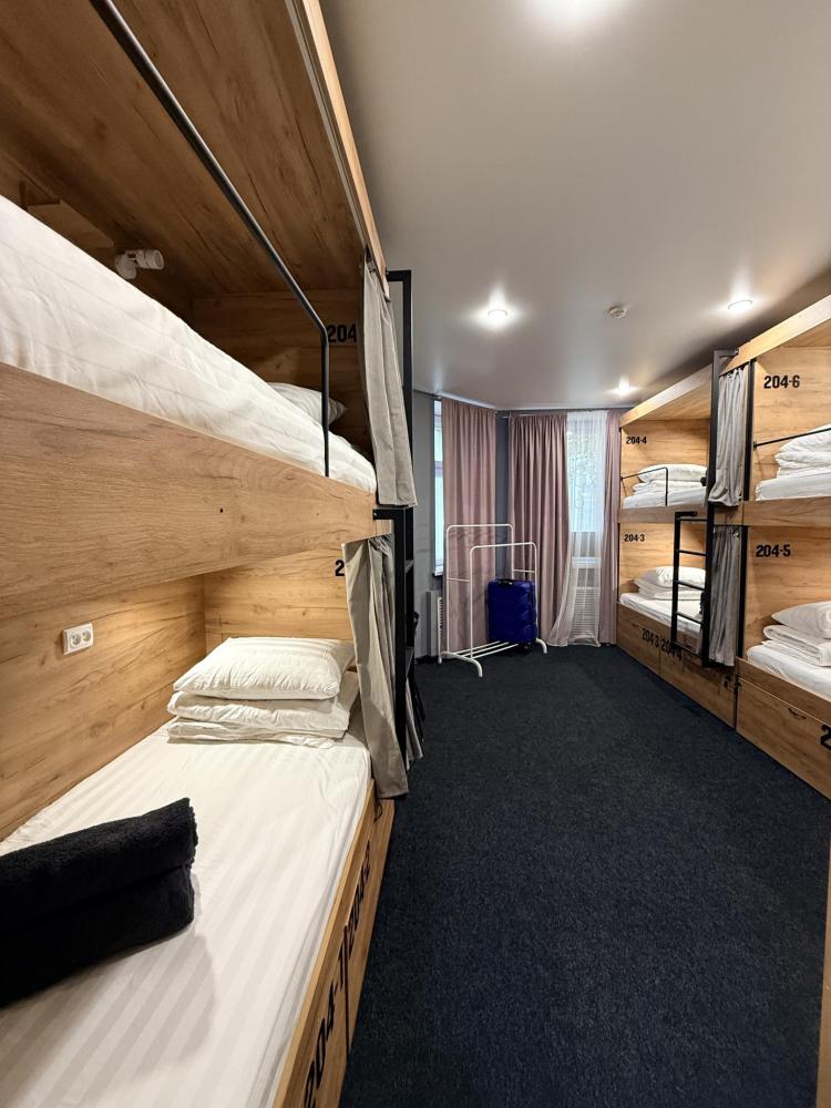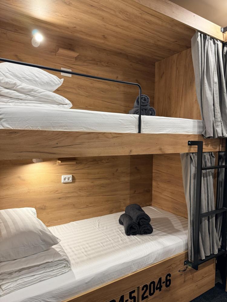 Добро пожаловать в наш общий шестиместный номер! Здесь вы найдете комфорт и удобство для приятного пребывания. Номер оснащен кондиционером, чтобы обеспечить комфортную температуру в любое время года. Каждая кровать оснащена выдвижными ящиками, где вы можете удобно хранить свои вещи и сохранять порядок. Также у каждой кровати есть индивидуальные шторки, чтобы создать личное пространство и обеспечить вам чувство уединения.