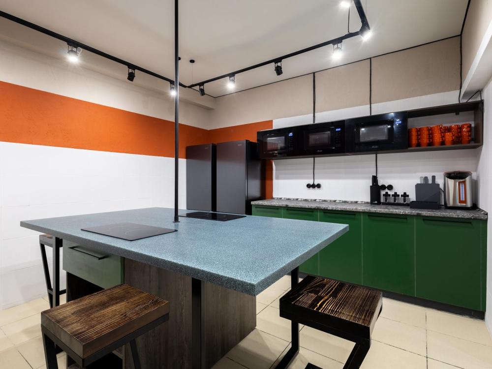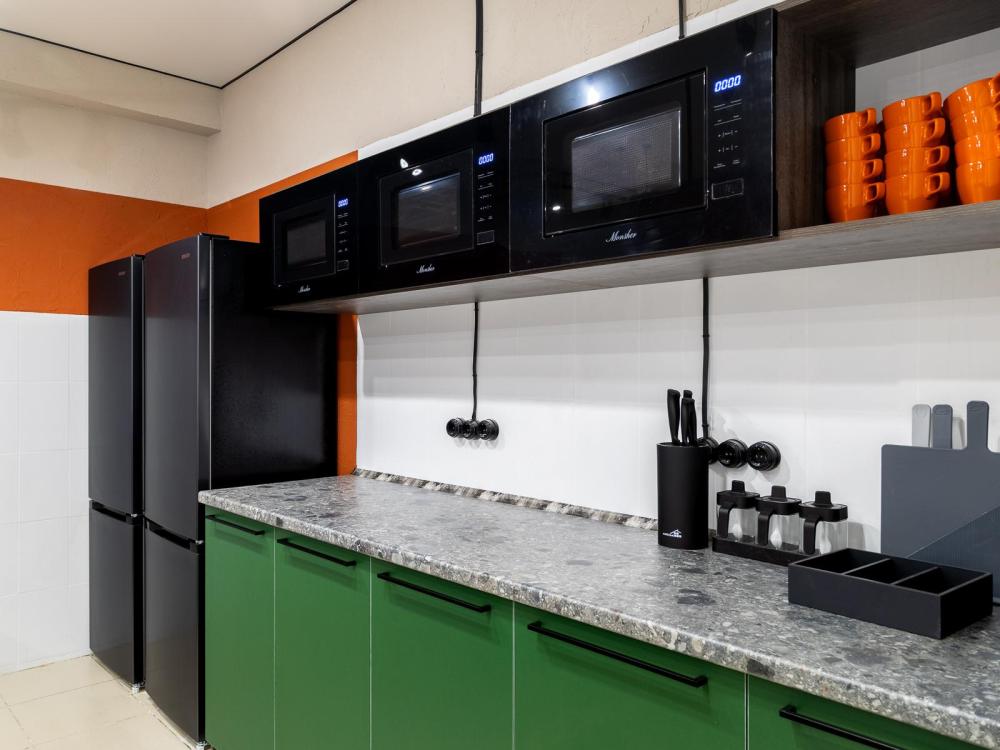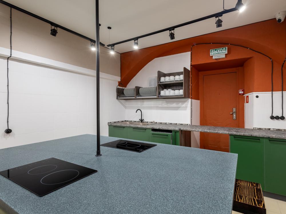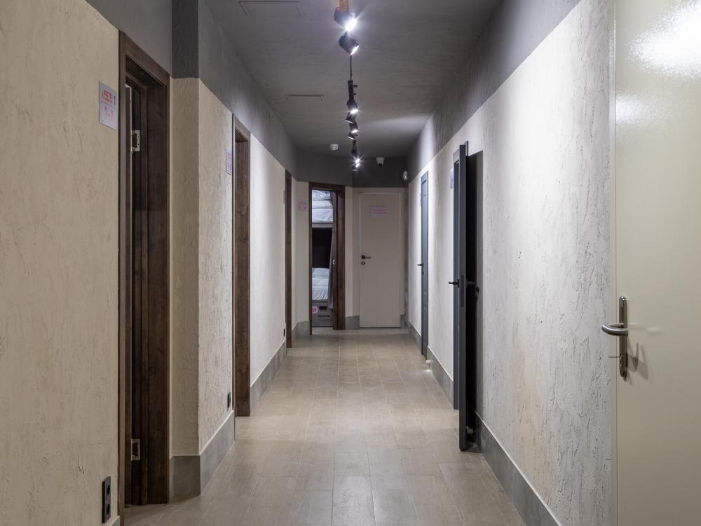 Восьмиместный номер с двухъярусными кроватями. Каждая кровать выполнена в формате капсулы, каждая капсула закрывается плотной шторкой, так же каждая капсула оснащена индивидуальным освещением, вентилятором, розеткой и бра на гибком шланге для чтения. В комнате есть кондиционер и окно.