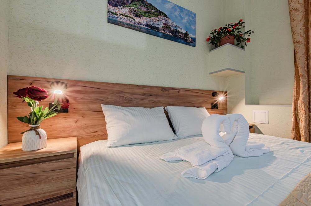 Комфортный семейный номер с общей ванной комнатой. В номере две двух ярусные кровати и одна односпальная ,прикроватные тумбочки,телевизор,журнальный стол.Отличный вариант для бюджетного семейного путешествия.