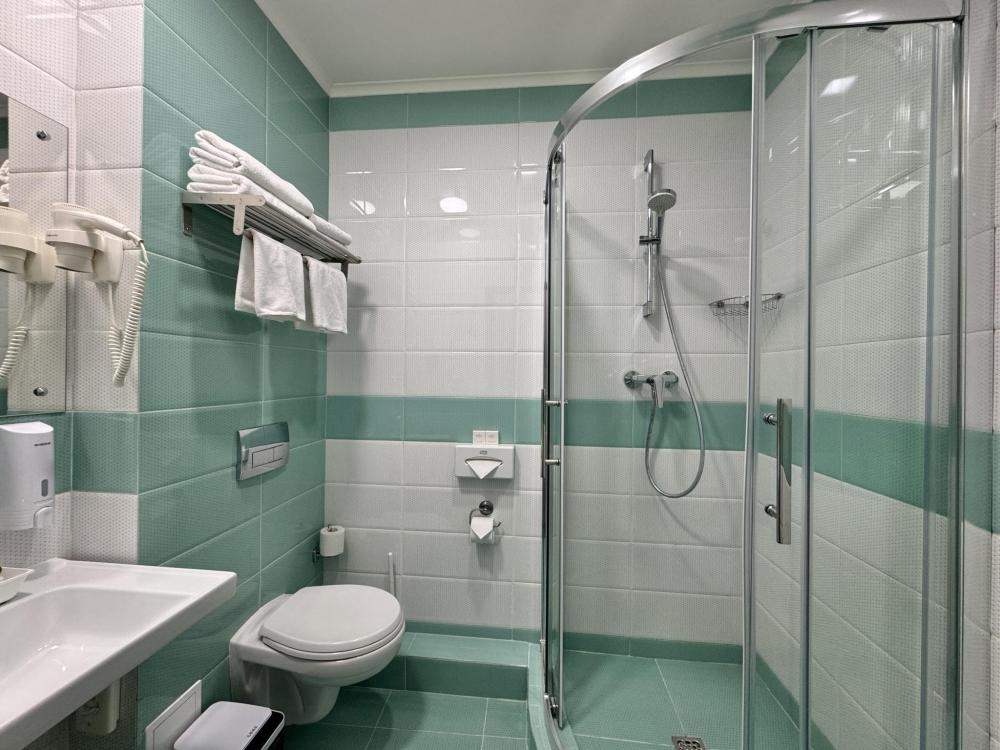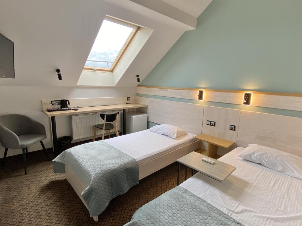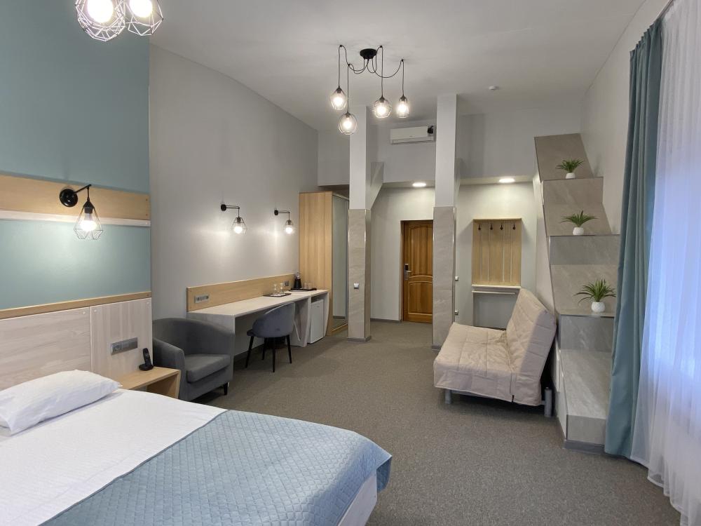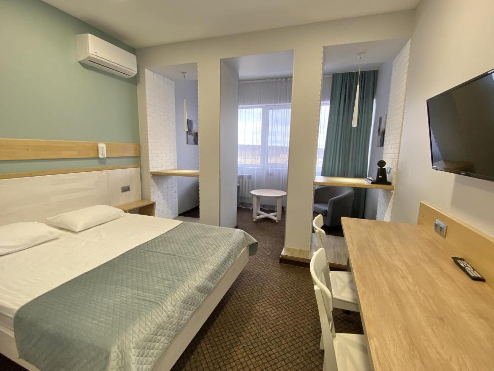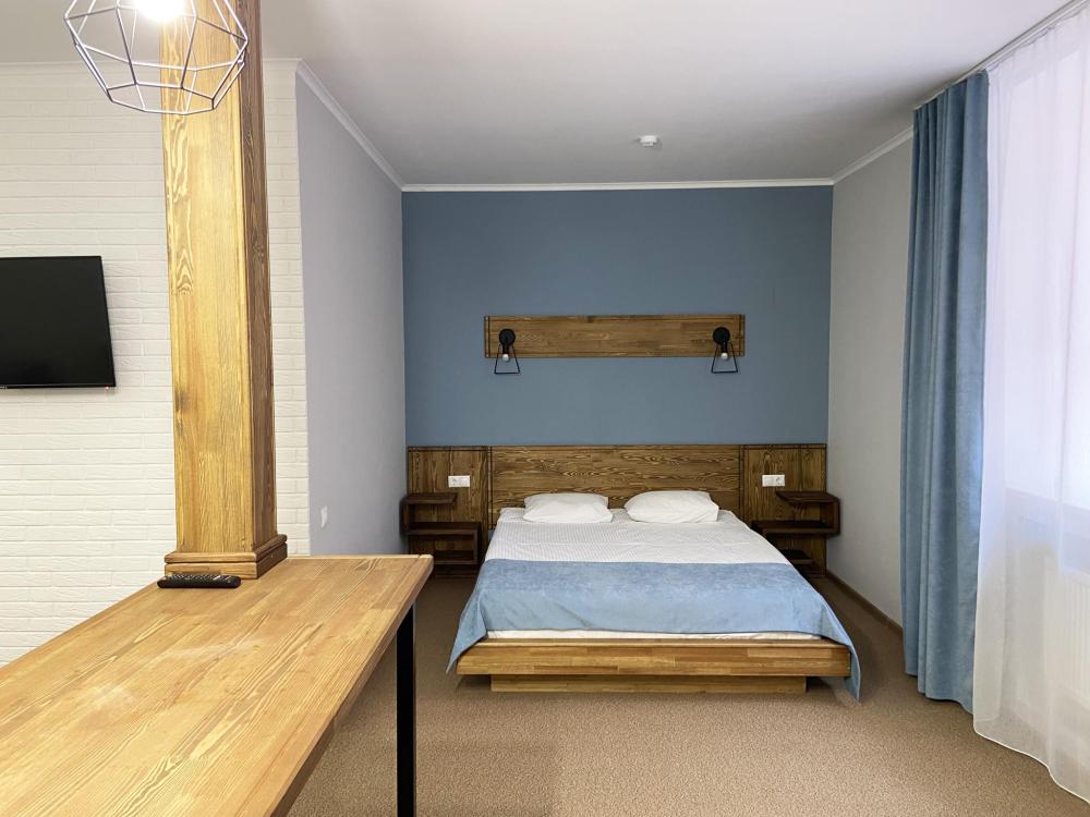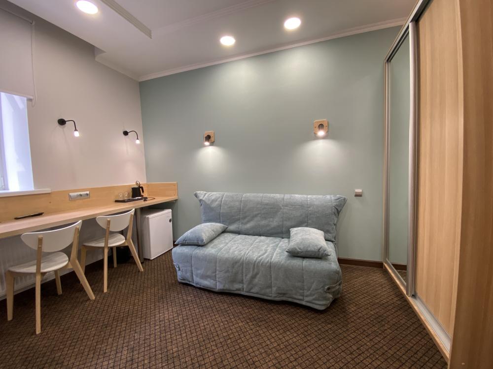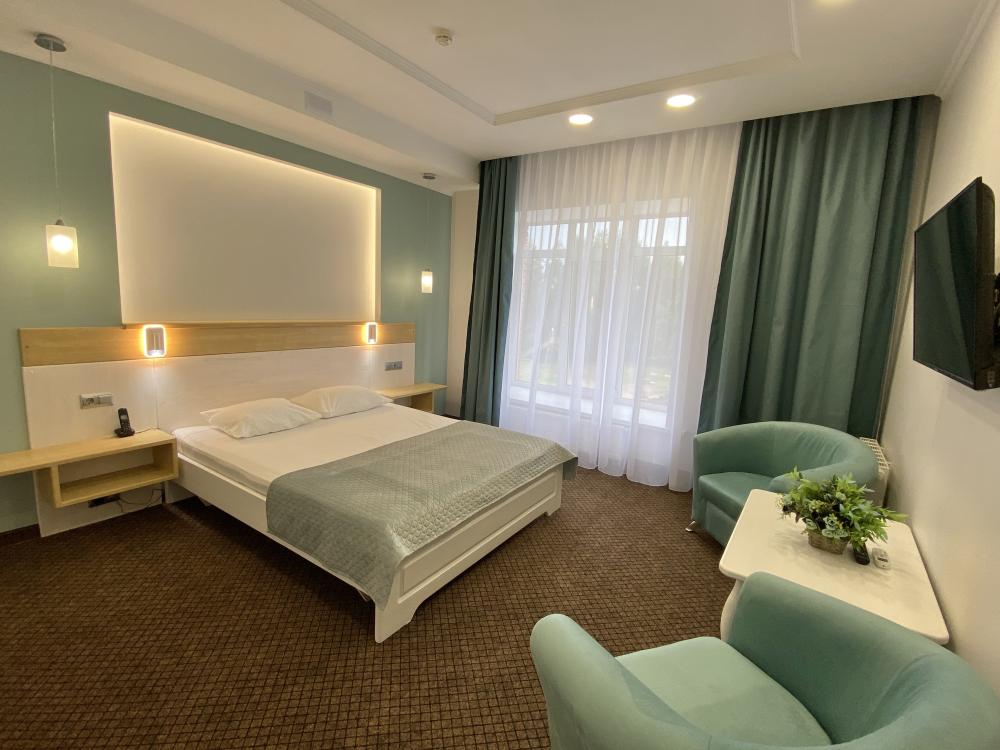 Стандартные уютные номера рассчитанные на проживание 1-го человека. Номера укомплектованы: просторной двуспальной кроватью, ЖК-телевизором, душевой, сан. узлом, выходом в Интернет. Общая площадь номера – 17 кв. м.