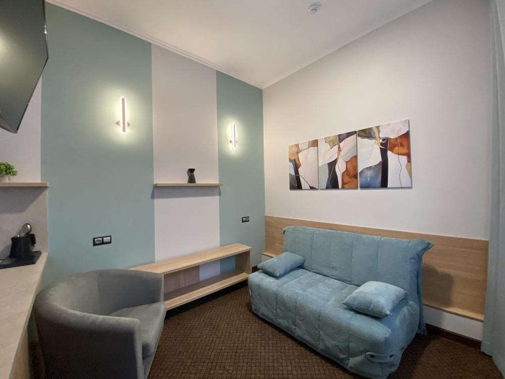 Однокомнатный дизайнерский номер с диваном и кроватью