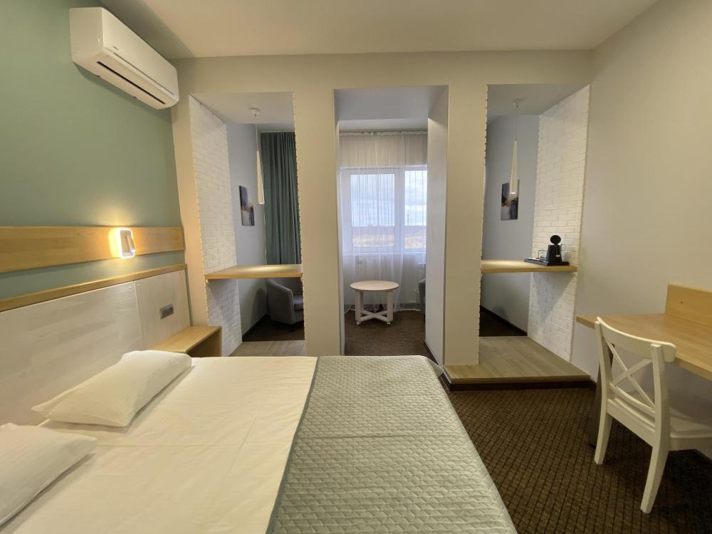 Комфортные номера рассчитанные на проживание 2-х человек. Номера укомплектованы: просторной двуспальной кроватью, ЖК-телевизором, душевой, сан.узлом, выходом в Интернет, холодильник, кондиционер. Общая площадь – 21 кв.м