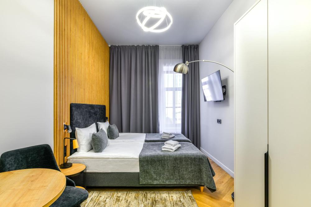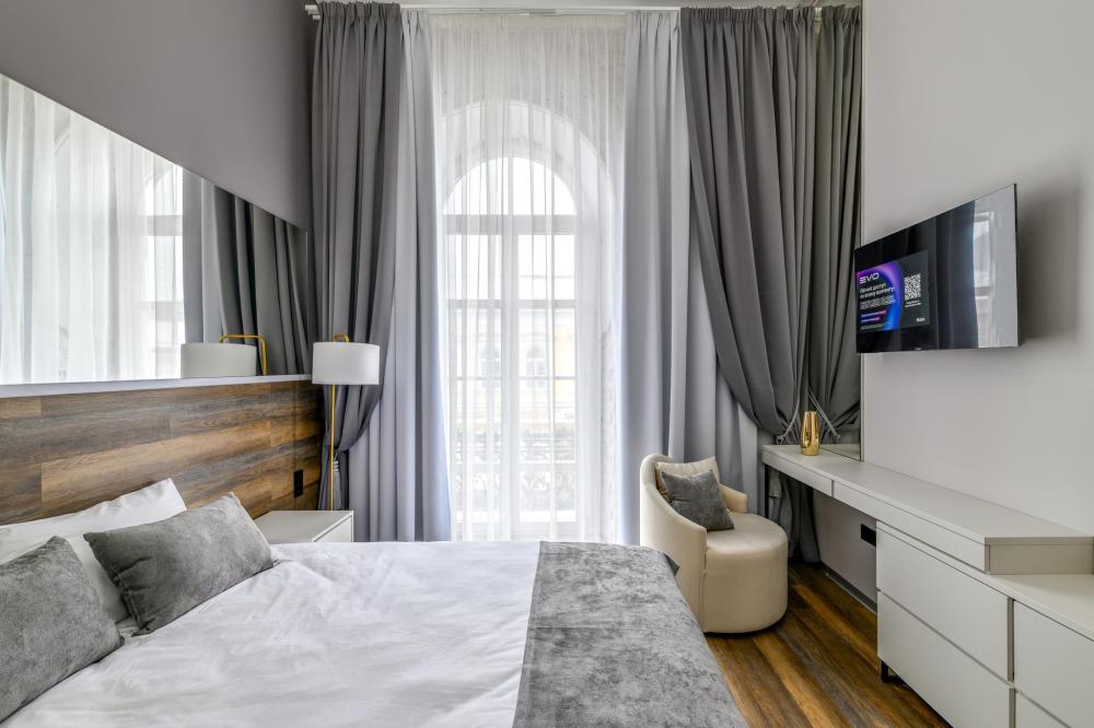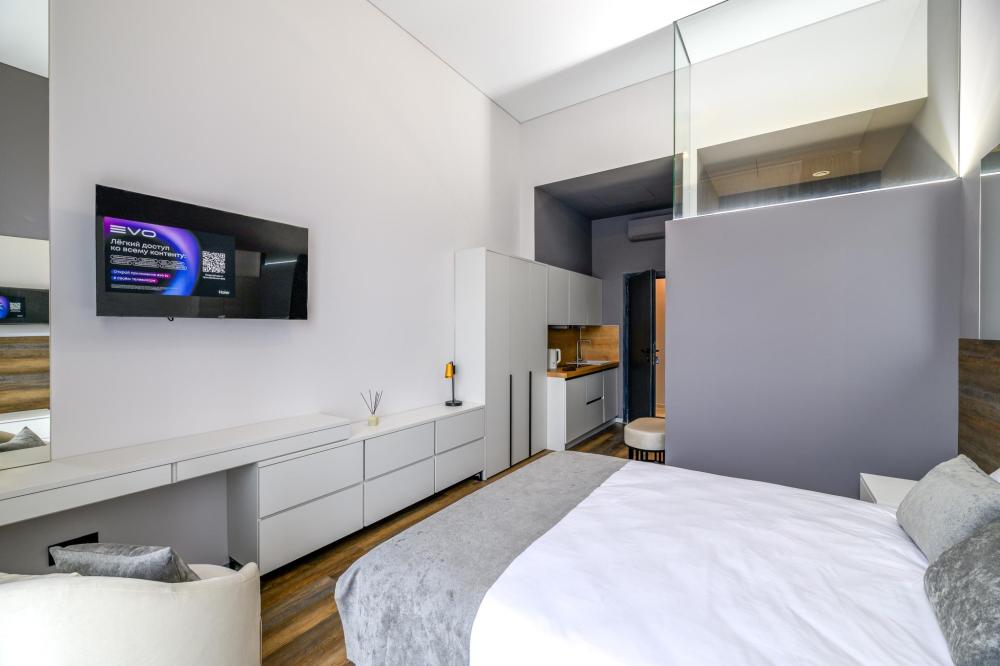 Номер «Люкс» — это пространство где каждый элемент создан для вашего максимального комфорта и безмятежности. Максимальная вместимость номера 2 гостя. Стильный номер, оформленный в минималистичном дизайне, сочетает в себе элегантность и функциональность. Элементы из натурального дерева в интерьере добавляют тепла и гармонии, а большие окна наполняют пространство светом, обеспечивая ощущение легкости. В номерах категории «Люкс» вы найдете все необходимое для комфортного пребывания удобная большая кровать, мини-кухня с бытовой техникой и посудой, телевизором и бесплатным Wi-Fi. Рабочая зона. Отдельная ванная комната с душем, феном и косметическими принадлежностями. Для Вашего удобства в номере предусмотрено дополнительное оснащение банными халатами.