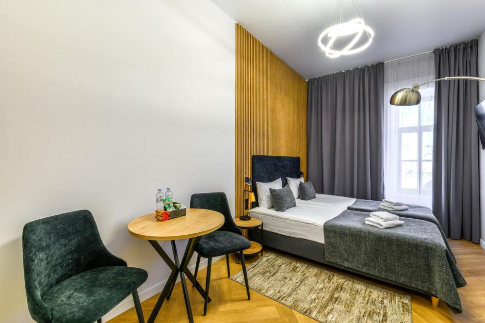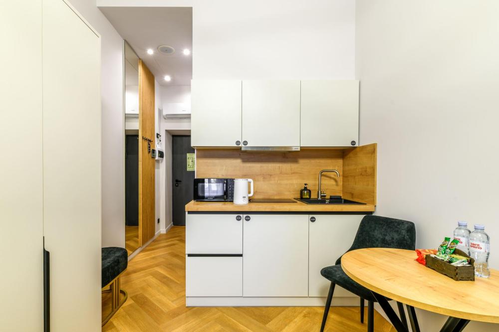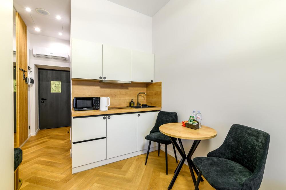 Номер «Бизнес» — идеальное место для отдыха и вдохновения, где комфорт и стиль гармонично переплетаются. В номере «Бизнес» смогут комфортно расположиться 3 гостя. Просторное помещение наполнено естественным светом, а стильная мебель и изысканные детали интерьера добавляют нотку утонченности, делая каждое мгновение в этом пространстве особенным. В этих номерах вы найдете все необходимое для комфортного пребывания удобная большая кровать, мини-кухня с бытовой техникой и посудой, телевизором и бесплатным Wi-Fi. Рабочая зона. Отдельная ванная комната с душем, феном и косметическими принадлежностями. Для Вашего удобства в номере предусмотрено дополнительное оснащение банными халатами.