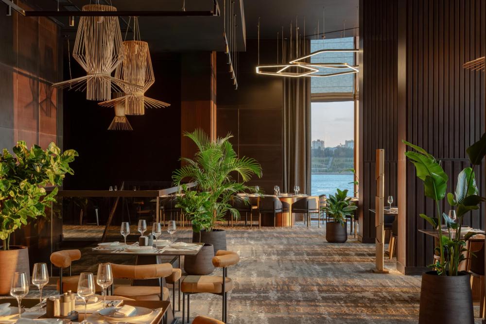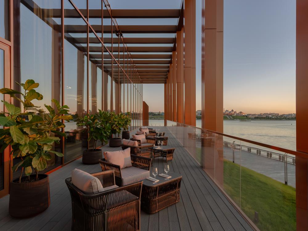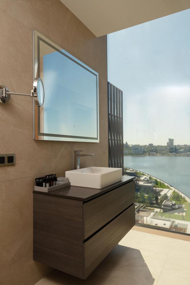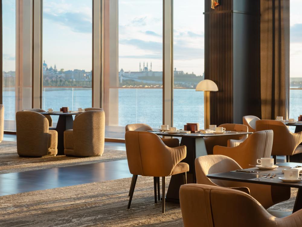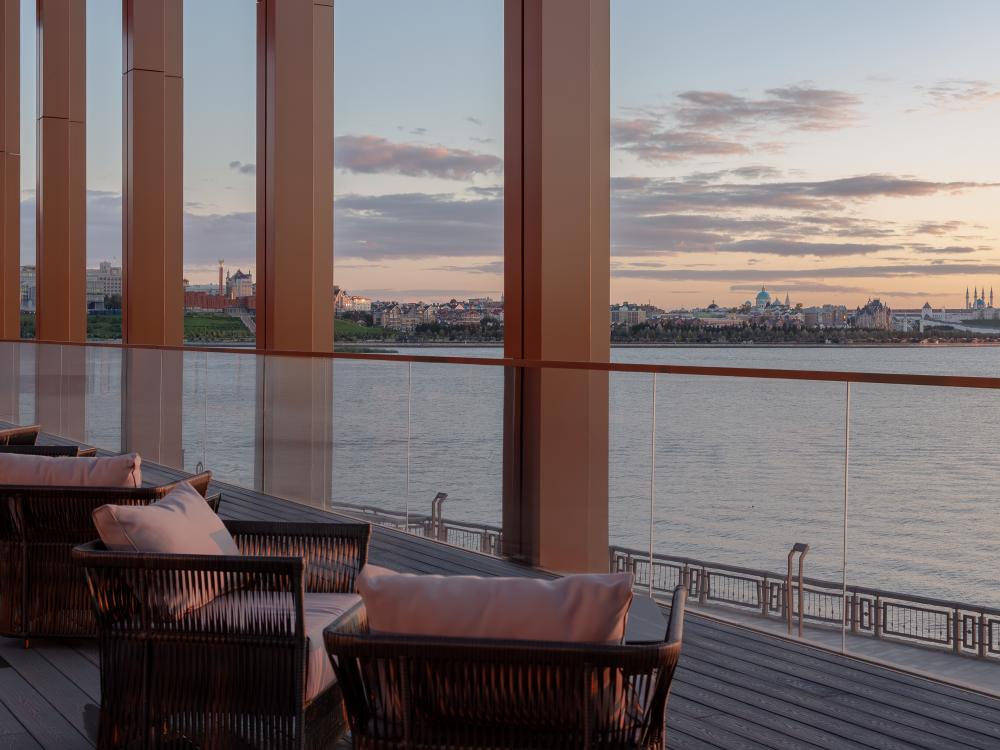 Светлый и просторный номер Джуниор Сюит Премьер 56 м2 создан для тех, кто живёт в ритме мегаполиса, но ценит комфорт и внимание к деталям. Кровать King Size с мягким изголовьем оборудована ортопедическим матрасом. В номере удобно поработать с ноутбуком, подготовиться к важной презентации или почитать книгу. Гардеробная зона скроет объем вещей, чтобы не отвлекать гостя от спокойного интерьера. Душевая зона с панорамными окнами создает особую атмосферу при принятии душа. Панорамные окна открывают захватывающие виды на живописную акваторию с величественным Кремлём на противоположном берегу. Полное оснащение для удобства гостей: высокоскоростной Wi-Fi для успешной работы, современная система климат-контроля, удобная рабочая зона, сейф для ценных вещей, современная ванная комната с премиальными косметическими принадлежностями, чайный уголок.