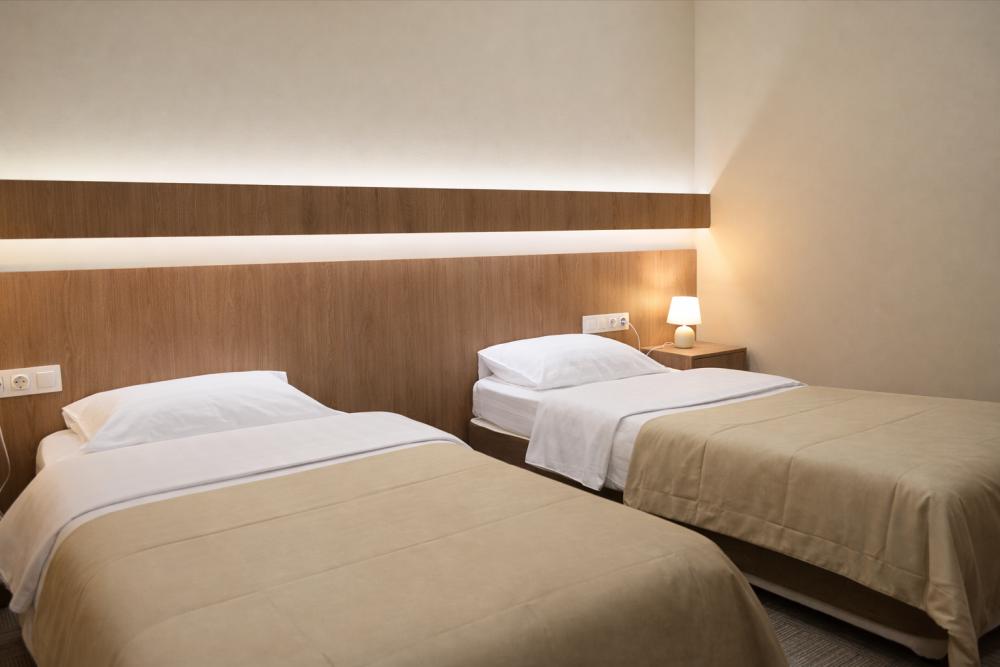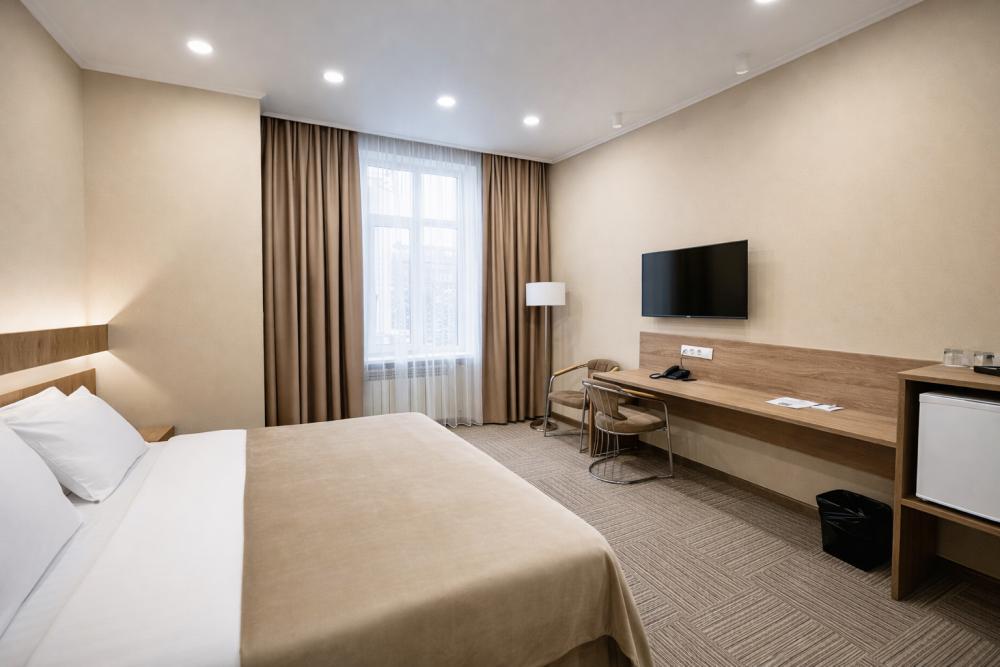 Просторный номер вместимостью до 2 гостей. В номере предусмотрено все необходимое для комфортного отдыха: вместительный гардероб, телевизор, мини-холодильник, телефон, чайный набор и комплект банных принадлежностей. Собственная ванная комната оборудована душем, феном и набором косметических средств.