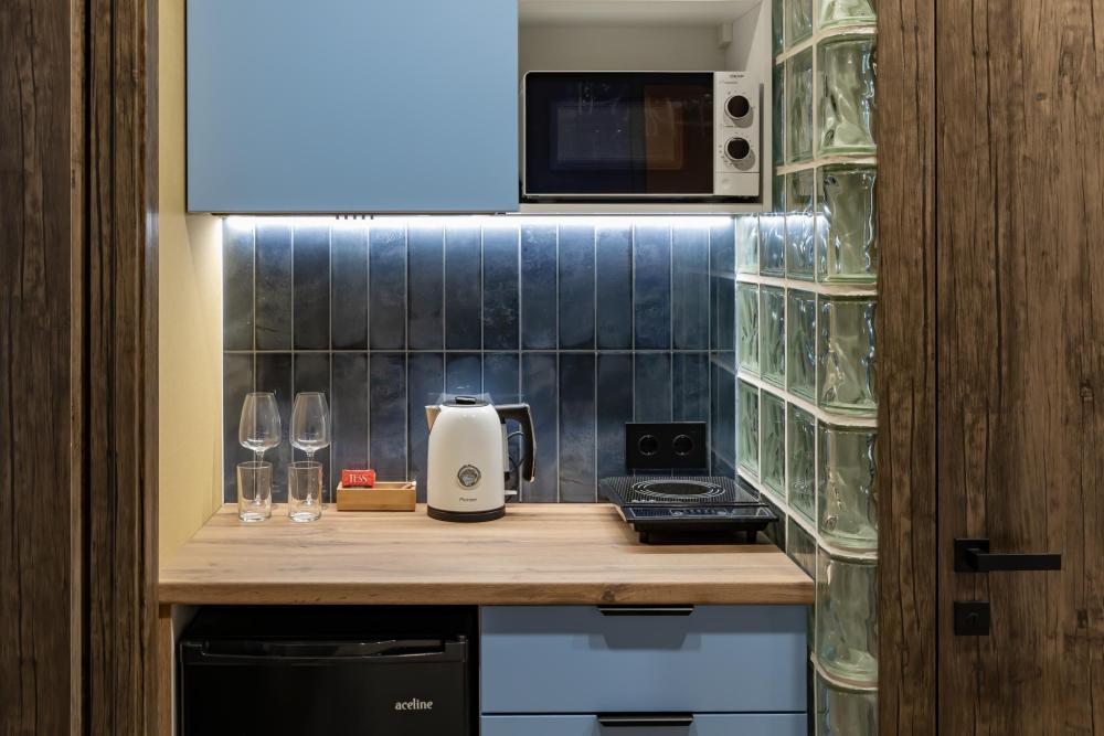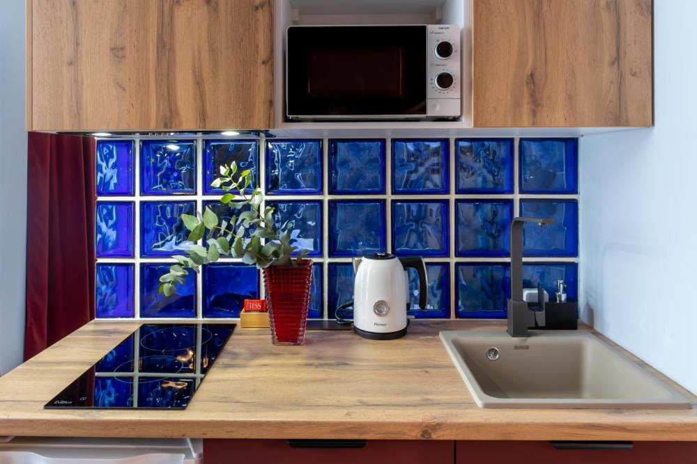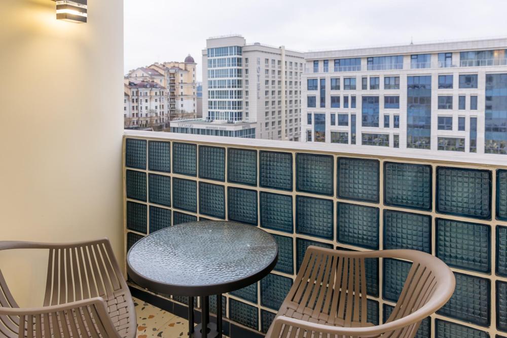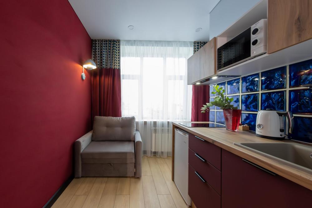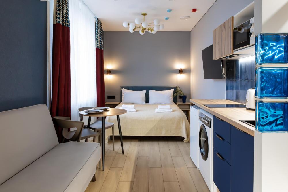 В студии комфорт с балконом и видом на канал Булак комфортно разместятся два человека. В номере есть двуспальная кровать, мини-кухня со всем необходимым для приготовления еды. Совмещенный санузел с душевой кабиной.