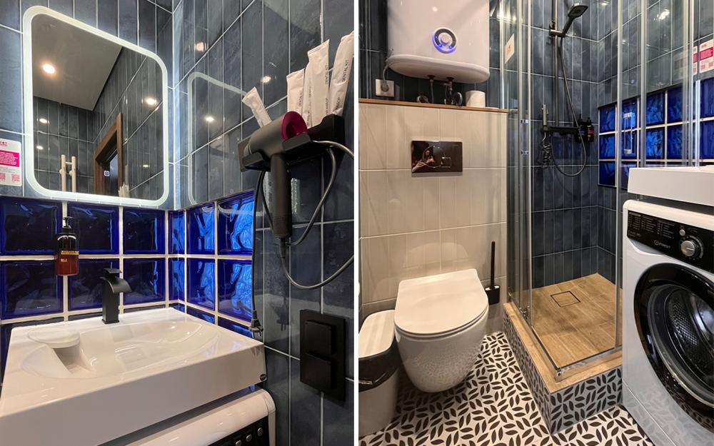 Семейные апартаменты подойдут для размещения до 5 человек. В номере есть двуспальная кровать, раскладной диван 140х190 см и раскладное кресло 80*185 см. Мини-кухня со всем необходимым для приготовления еды, совмещенный санузел с душевой кабиной. Окна в номере выходят на канал Булак.
