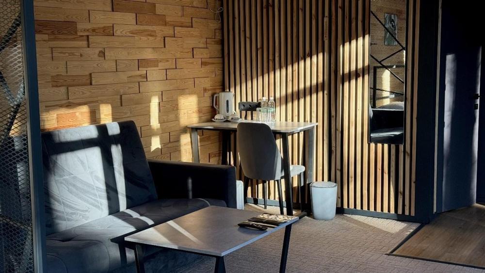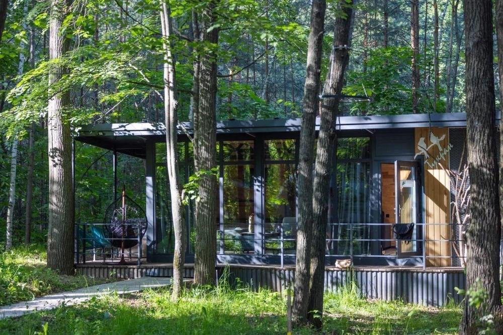 Одноуровневый домик с большой двуспальной кроватью, позволит почувствовать максимальное слияние с природой Разрабатывая планировку, мы изучили сотни материалов и выбрали самые лучшие практики, чтобы наши домики были максимально практичным и каждый сантиметр был использован на пользу. Наша цель была дать будущему гостю максимальное слияние с природой, поэтому 2 из 4 стен сделаны из панорамного остекления. В тоже время шторы смогут создать интимность места и позволят уединиться, например, для ретрита или чтения своей любимой книги. В этом домике есть: - king size кровать 160х200; - рабочее место; - мини кухню с холодильником, чайником. - телевизор и wifi; - душевая с санузлом; - терраса с уличной мебелью.