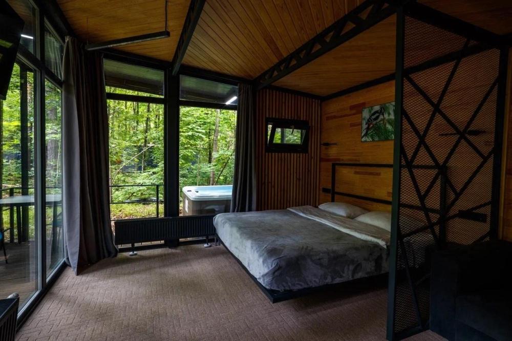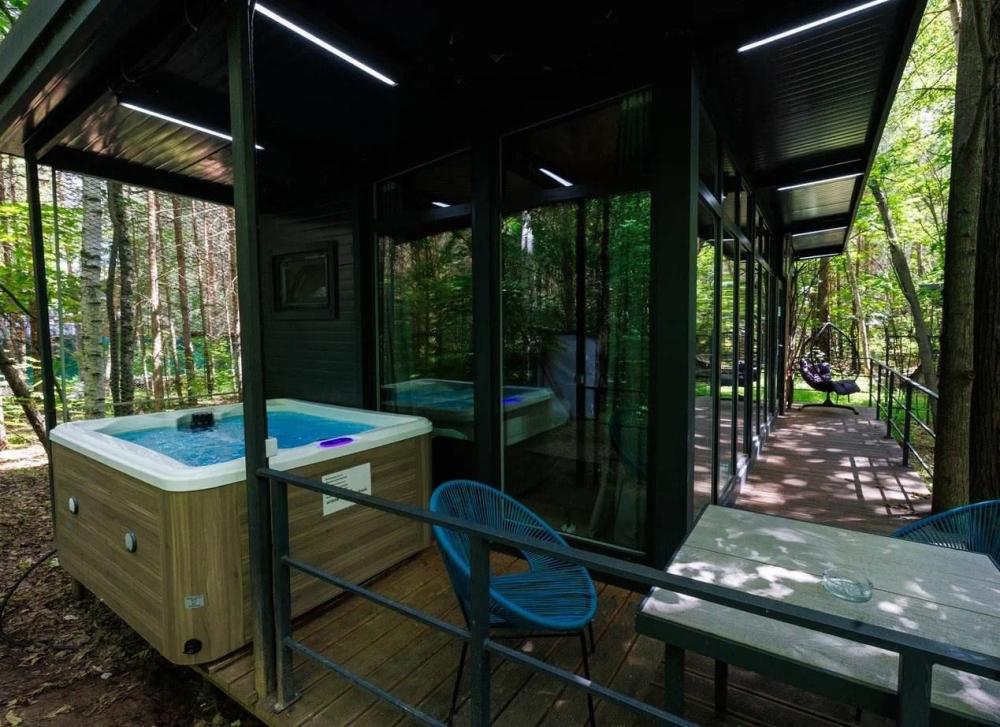 Бунгало в лесу СПА находится в окружении деревьев и природы. В нем есть все для комфортного и спокойного отдыха. Главная особенность Бунгало в лесу СПА – это не только его расположение, но и всесезонная гидромассажная ванна под открытым небом.