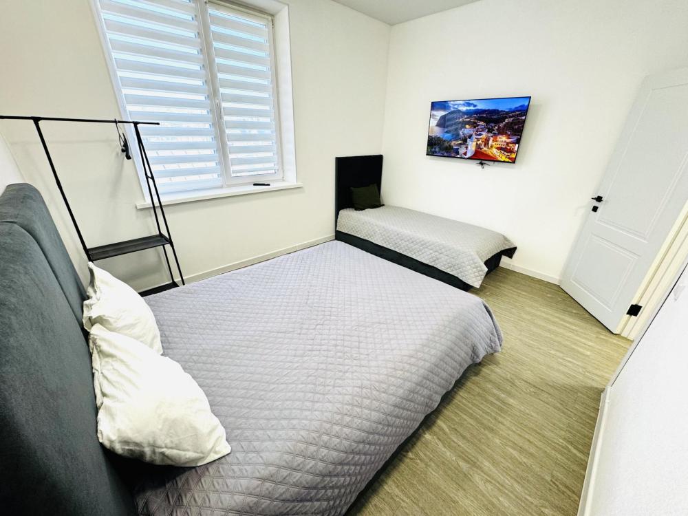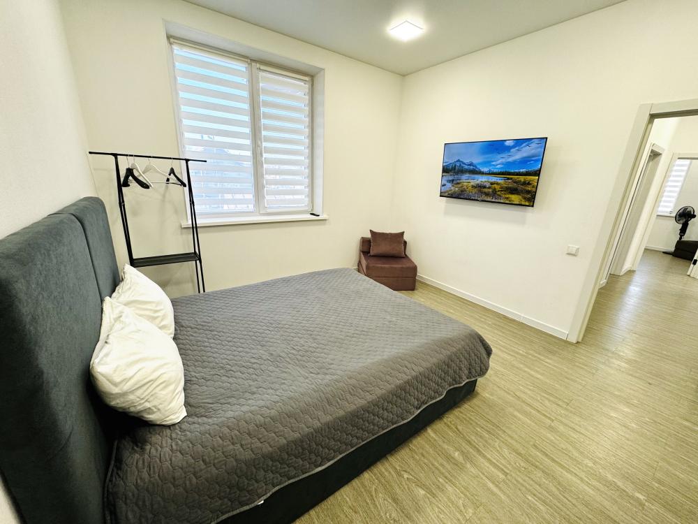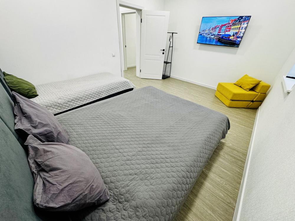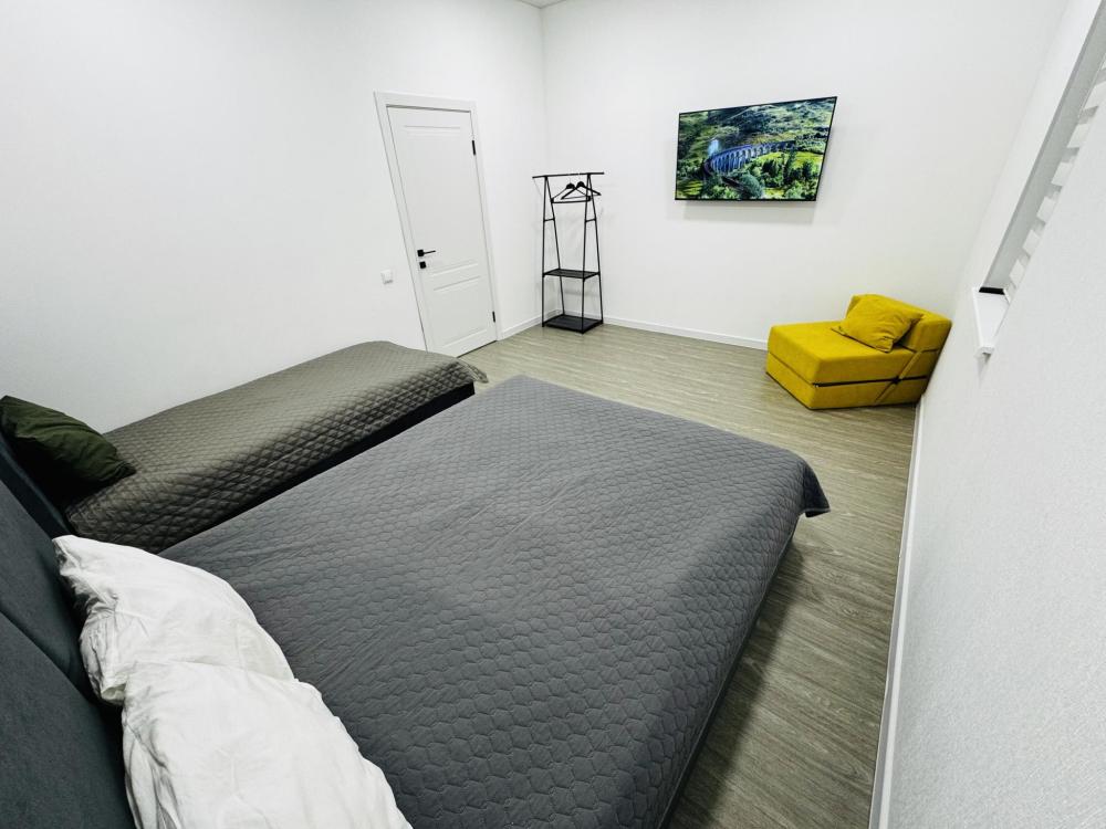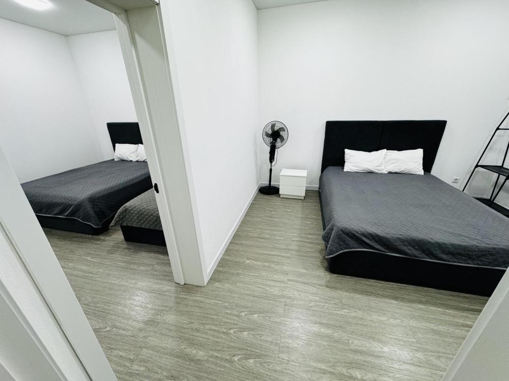 4 комфортные комнаты, одна из них проходная. В каждой комнате 4К ТВ и двуспальная кровать с ортопедическим матрасом Ormatek.