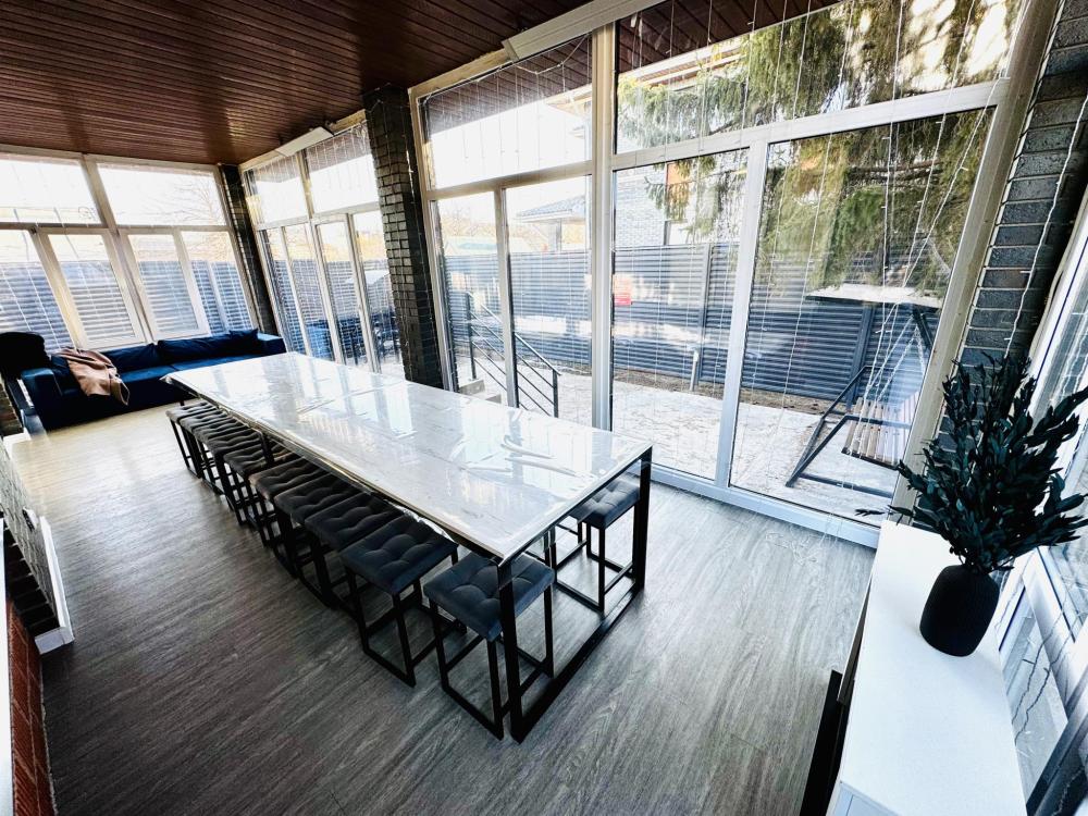 Новый 2-этажный коттедж в центре Казани. Дом повышенной комфортности расположен в Аметьево. Абсолютно новый и полностью оборудованный дом с современным ремонтом (сентябрь 2023) идеально подойдёт для качественного отдыха. Описание 1 этажа: Гостиная с комфортным диваном, колонка с Bluetooth и караоке. 4K TV Smart и Sony PlayStation 5, Wi-Fi, оборудованная кухня (плита, холодильник, СВЧ, чайник, полный комплект посуды), стол на 16 персон, горячая сауна (предоставляются полотенца 2 тропических душ, большая ванная комната с окном (есть стиральная машина). 2 этаж: 3 уютные комнаты, каждая с 4К TV, с 2-спальными кроватями (матрасы Ormatek), большая ванная комната с окнами.