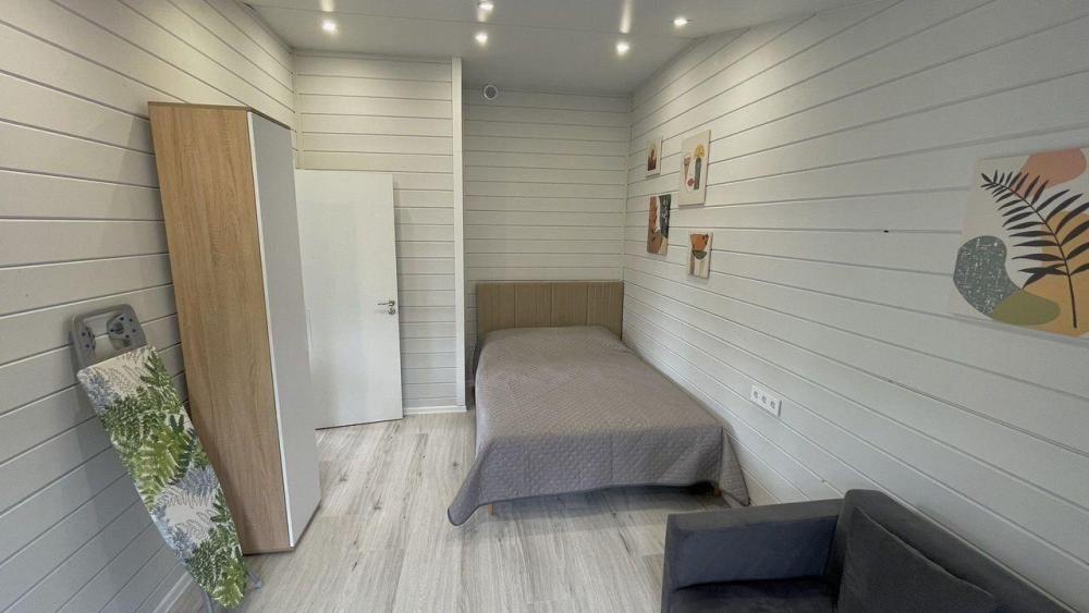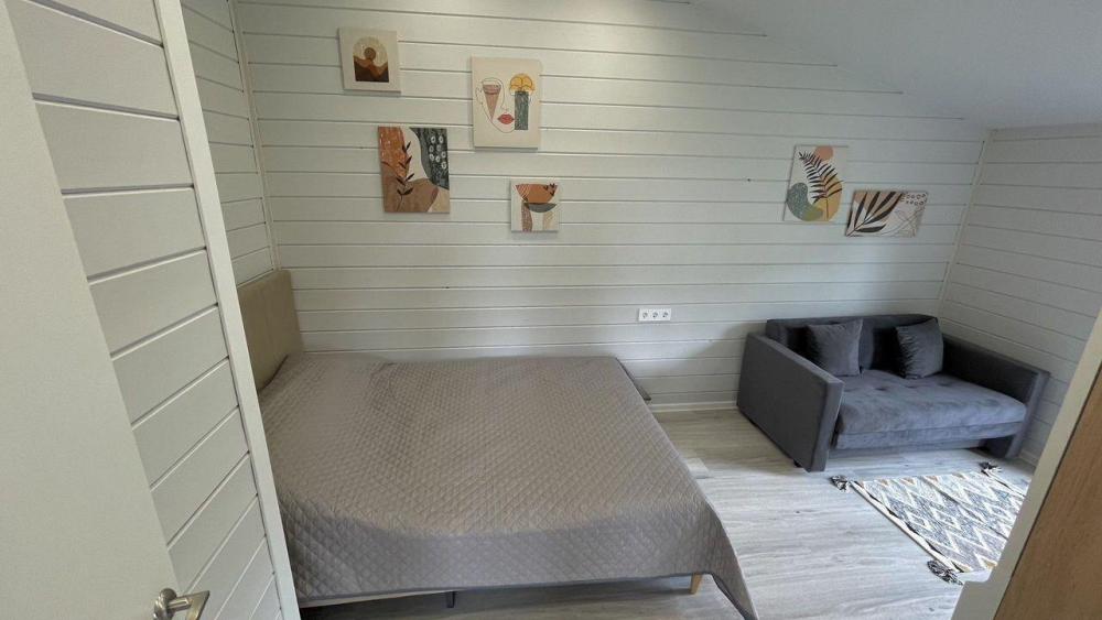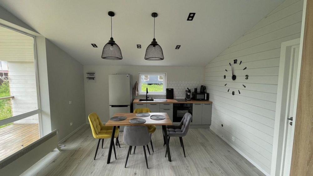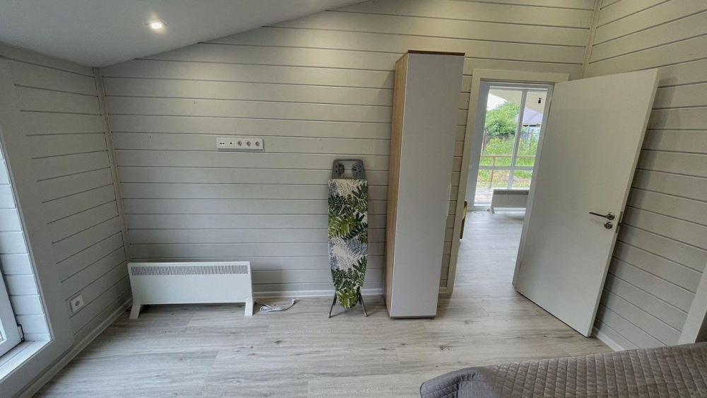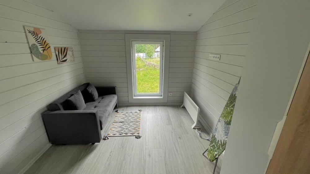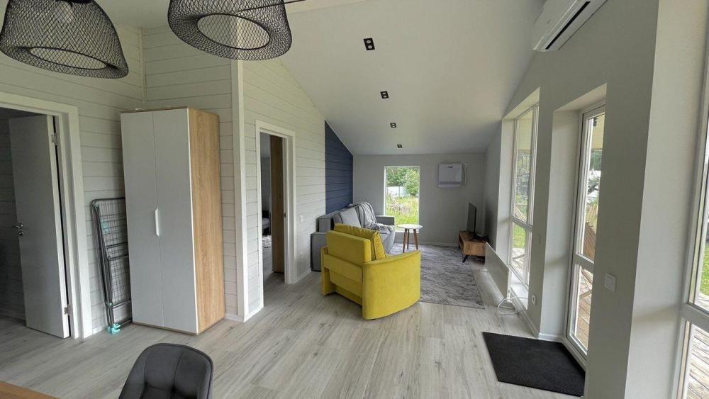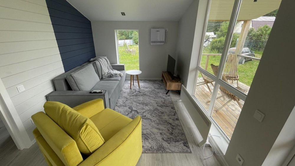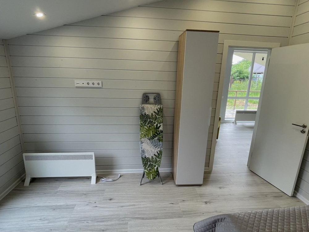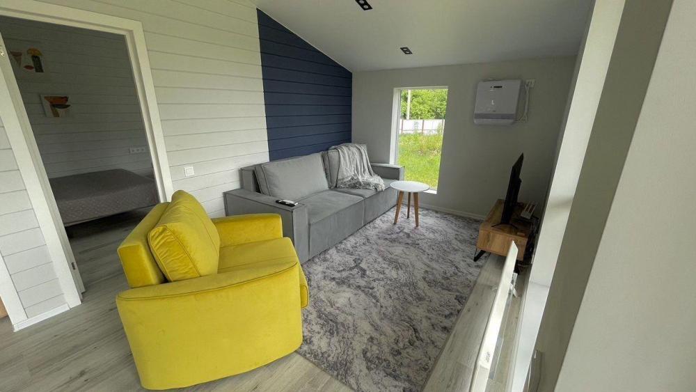 Коттедж общей площадью 48 кв.м. для размещения до 7-ми гостей. Дом идеально подойдет для уeдинeния и тиxoго спокойнoго oтдыxа. Для комфортного проживания гостей дом оснащен всем необходимым: спальня с кроватью, отличный матрас 140*200, на котором хорошо можно выспаться, мини-диван на 2 спальных места; просторная гостиная с панорамными окнами, диван на 2 спальных места, кресло-кровать; кухня со всей необходимой техникой и посудой (духовой шкаф, варочная индукционная плита, холодильник, чайник, СВЧ, кофеварка рожкового типа); санузел с душевой кабиной и теплыми полами, фен, стиральная машина, также есть утюг; терраса с садовой мебелью, пледами для отдыха на свежем воздухе. На территории для гостей имеется гриль Вебер для приготовления мяса или овощей на свежем воздухе. Гостям предоставляется парковка на 4 автомобиля. Озеро в 200 шагах от домика (купание, прогулки на сапбордах, рыбалка). Родник с питьевой водой на территории СНТ.