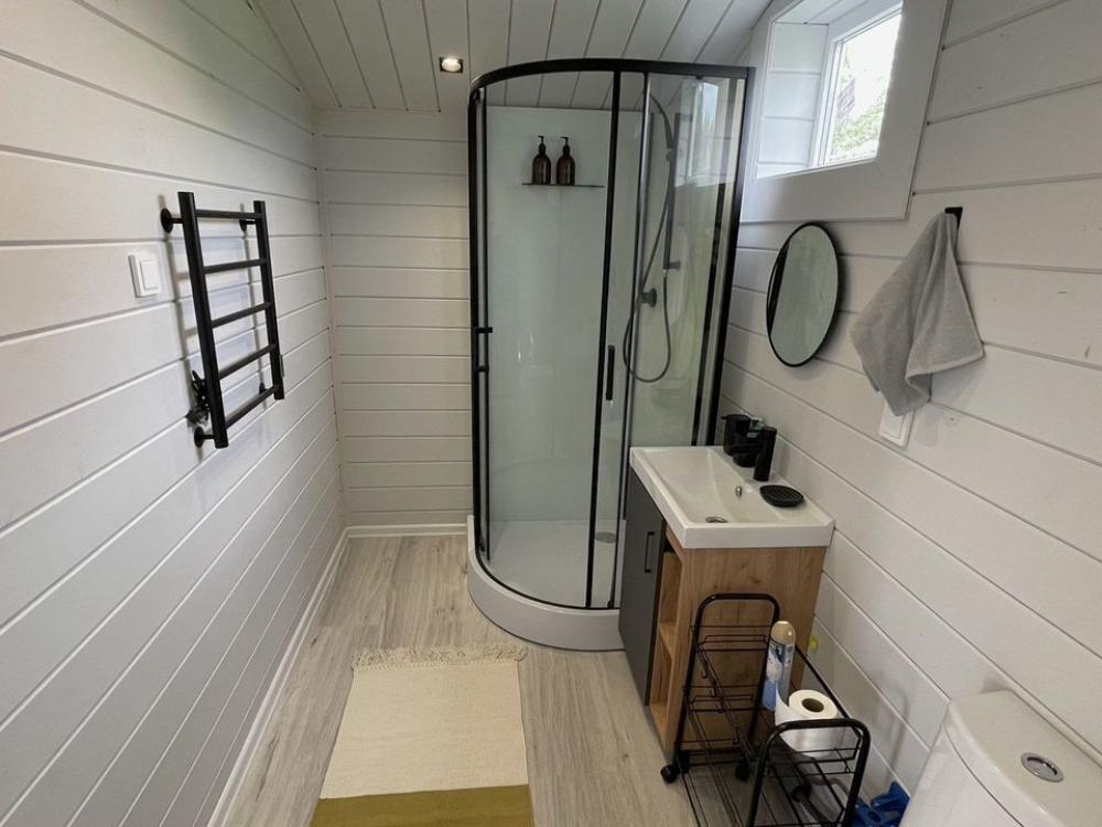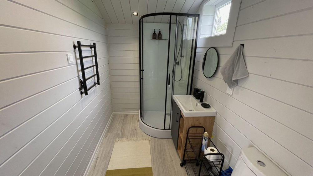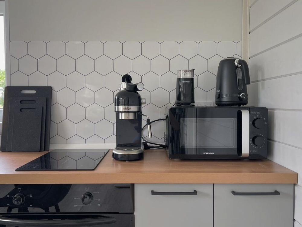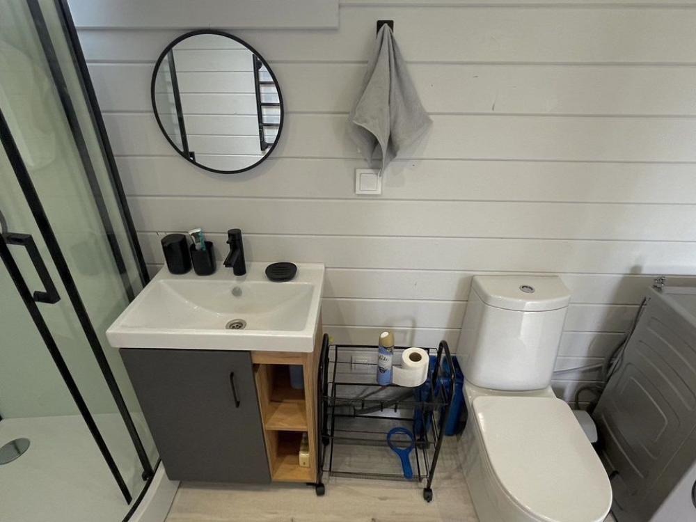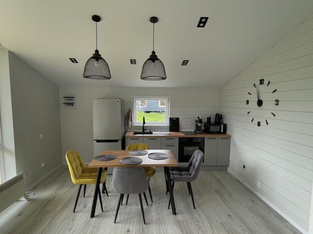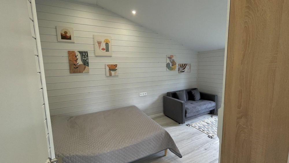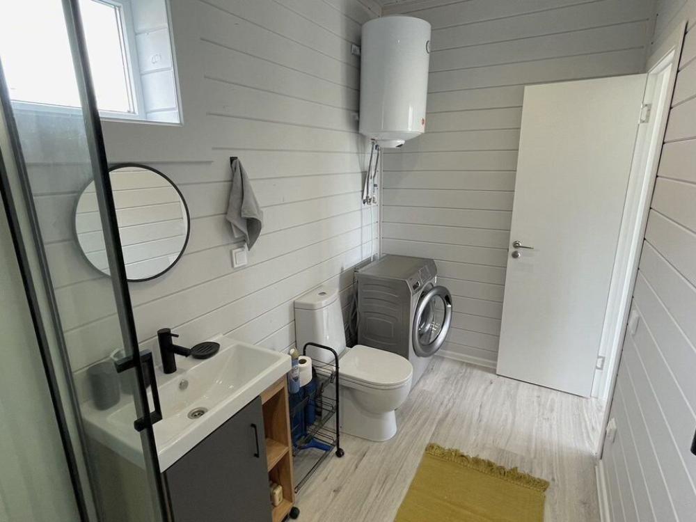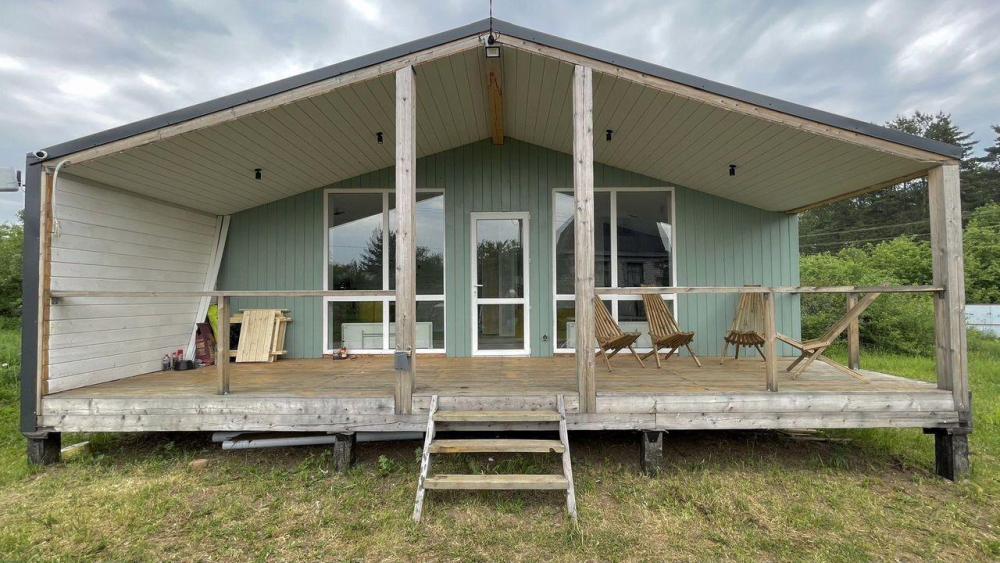 Коттедж общей площадью 48 кв.м. для размещения до 7-ми гостей. Дом идеально подойдет для уeдинeния и тиxoго спокойнoго oтдыxа. Для комфортного проживания гостей дом оснащен всем необходимым: спальня с кроватью, отличный матрас 140*200, на котором хорошо можно выспаться, мини-диван на 2 спальных места; просторная гостиная с панорамными окнами, диван на 2 спальных места, кресло-кровать; кухня со всей необходимой техникой и посудой (духовой шкаф, варочная индукционная плита, холодильник, чайник, СВЧ, кофеварка рожкового типа); санузел с душевой кабиной и теплыми полами, фен, стиральная машина, также есть утюг; терраса с садовой мебелью, пледами для отдыха на свежем воздухе. На территории для гостей имеется гриль Вебер для приготовления мяса или овощей на свежем воздухе. Гостям предоставляется парковка на 4 автомобиля. Озеро в 200 шагах от домика (купание, прогулки на сапбордах, рыбалка). Родник с питьевой водой на территории СНТ.
