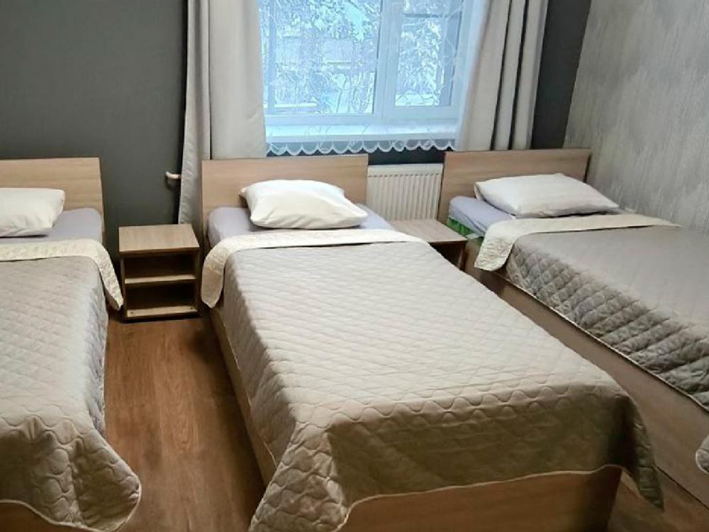 Номер стандарт с 3 односпальными кроватями- однокомнатный, оснащенный современной удобной мебелью и сантехникой, площадью 25 кв.м. В номере этой категории – три односпальных кровати, телевизор, стол, стулья, полки, тумбы, отделения для одежды и багажа, душевая, санузел, а также полотенца, банные и косметические принадлежности. Из окна номера открывается чудесный вид на могущественные карельские ели-великаны. Номера расположены на 1- м этаже отеля. Подходит для размещения командировочных, семейных пар, а также семей с детьми.