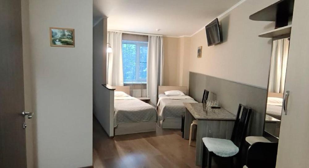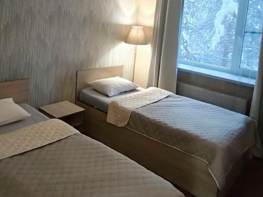 Номера стандарт с 2 односпальными кроватями - однокомнатные, оснащенные современной удобной мебелью и сантехникой, площадью 19 кв.м. Во всех номерах этой категории – две односпальные кровати, телевизор, стол, стулья, полки, тумбы, отделения для одежды и багажа, душевая, санузел, а также полотенца, банные и косметические принадлежности. Из окна номера открывается чудесный вид на могущественные карельские ели-великаны. Номера расположены на 1 и 2 этажах отеля. Подходит для размещения командировочных, семейных пар, а также семей с детьми. В некоторых номерах допустимо размещение с маленькими животными (до 10 кг.)
