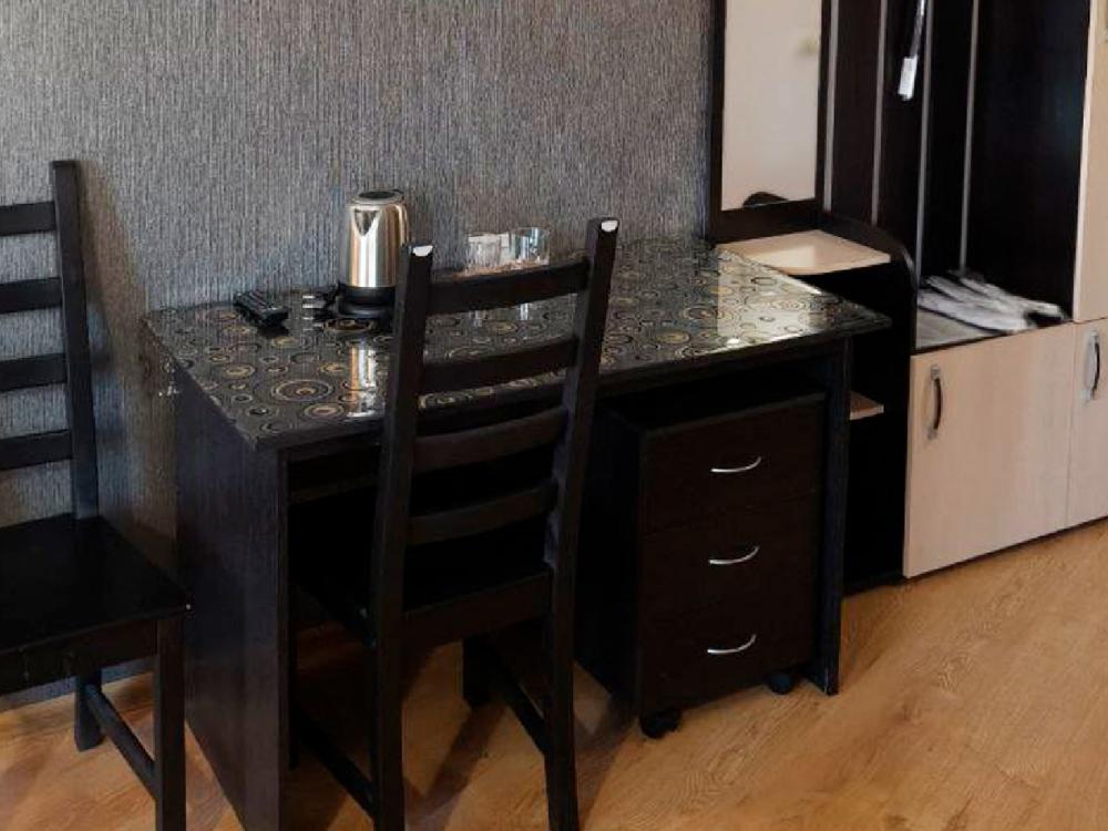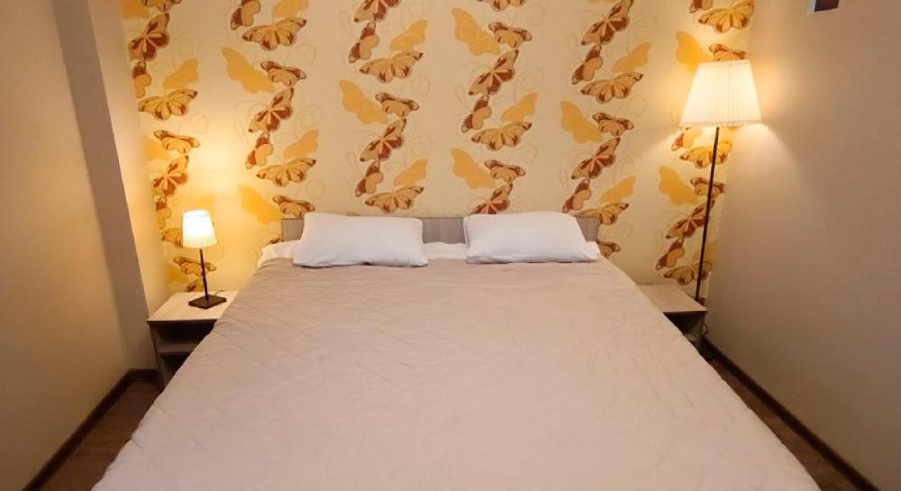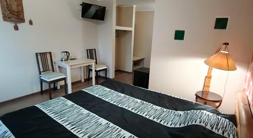 Номер стандарт с 1 двуспальной кроватью - однокомнатные, оснащенные современной удобной мебелью и сантехникой, площадью 25 кв.м. В номерах этой категории – одна широкая двуспальная кровать, телевизор, стол+стулья, полки, тумбы, отделения для одежды и багажа, душевая, санузел, а также полотенца, банные и косметические принадлежности. Из окна номера открывается чудесный вид на могущественные карельские ели-великаны. Номера расположены 2-м этаже отеля. Подходит для размещения командировочных, семейных пар, а также семей с детьми.