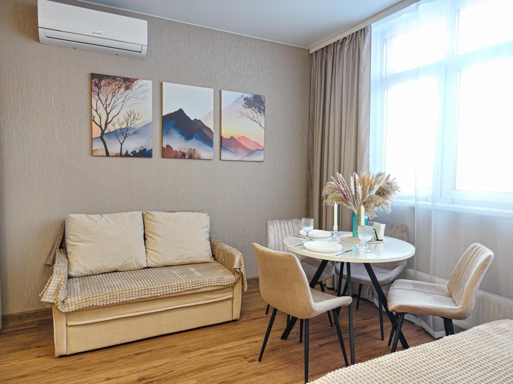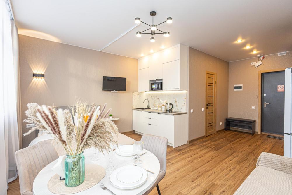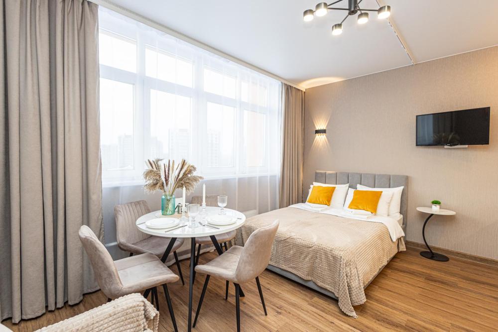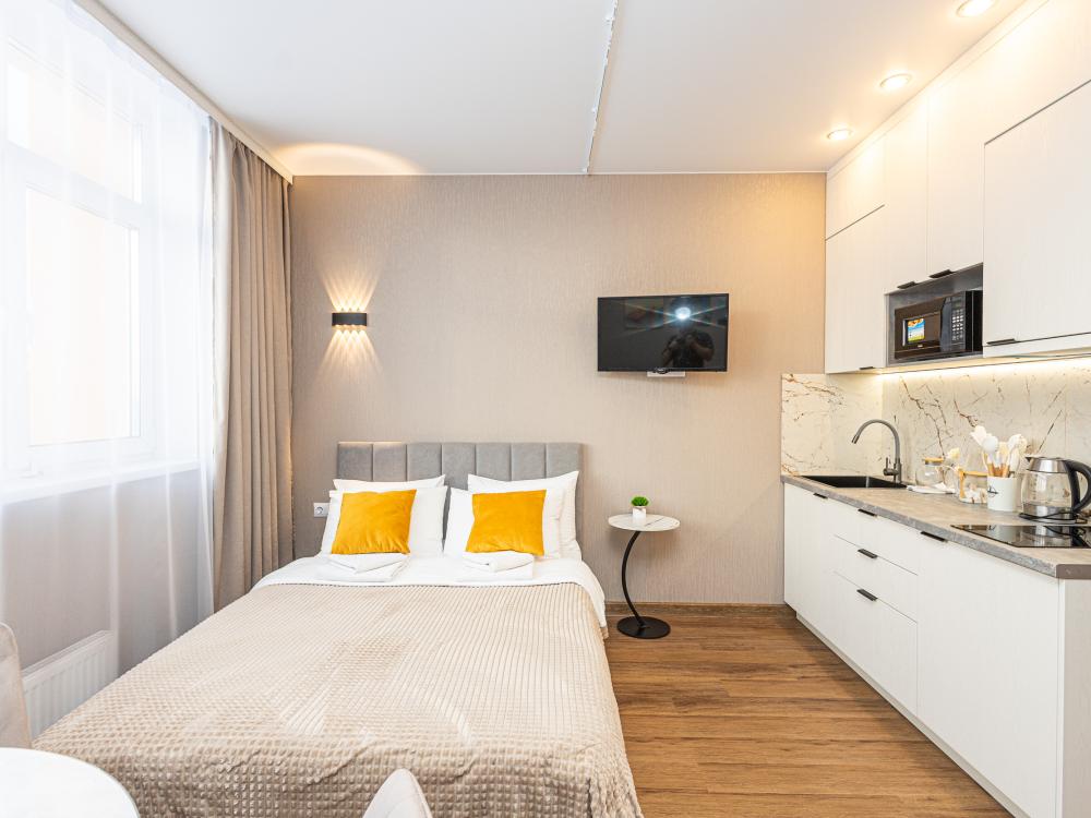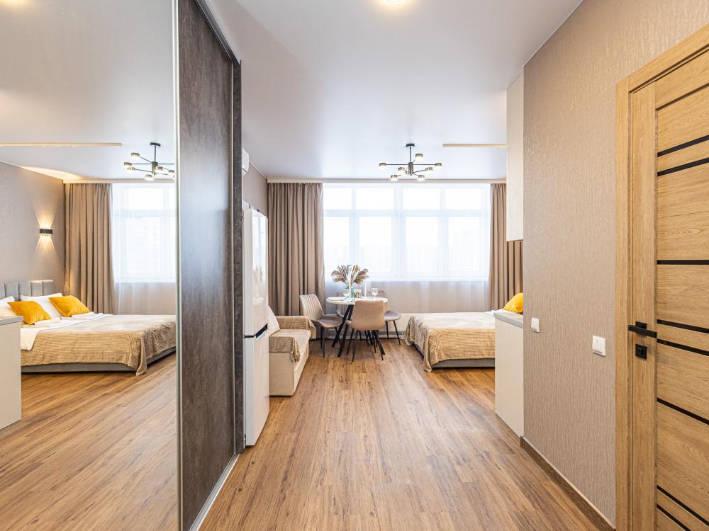 Новая просторная студия в Кемерово около ГЦС Кузбасс ! - Отлично для семейного отдыха и рабочих поездок. - Документы отчетности, чек с QR-кодом. - Круглосуточное бесконтактное заселение. - Администратор всегда на связи. АДРЕС: г. Кемерово, пр. Ленинградский 46, 10 этаж (есть лифт). УДОБНО заезжать тем, кто прилетел на самолёте или приехал на машине из Новосибирска, Томска, Красноярска, Барнаула и других городов. А ЕЩЁ: продуктовые магазины («Ярче», «Пятёрочка», «Бристоль»), аптека, кафе и рестораны, булочная-кондитерская с кофе и завтраками! КВАРТИРА: 1 комната, двуспальная кровать. Будет комфортно разместиться 1-2 гостям. Для вас готово свежее постельное бельё (100%-й хлопок) и полотенца. В квартире есть ванна. ТЕХНИКА: холодильник, чайник, плита, микроволновка, стиральная машина, утюг, фен. Есть всё для приготовления еды, а также сушилка и гладильная доска. ИНТЕРНЕТ: высокоскоростной Wi-Fi от GoodLine. Есть телевизор с кабельным ТВ и функцией «Смарт-ТВ»! В ПОДАРОК: разовые средства гигиены (шампунь, гель для душа, жидкое мыло, зубной набор). ДОПОЛНИТЕЛЬНО: большая открытая парковка со шлагбаумом во дворе, детские игровые площадки.
