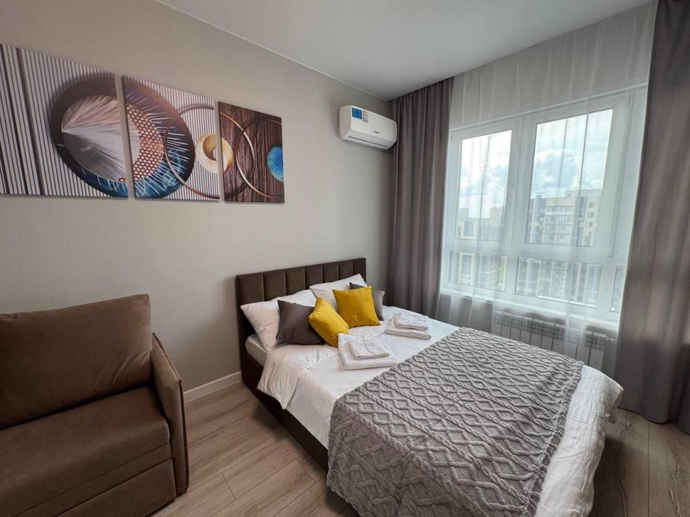 Новае апартаменты в Жилом комплексе комфорт класса. Огороженный двор с современными детскими и спортивными площадками, вместительная парковка,, безопасный двор видеонаблюдение. В квартире комната + кухня. Количество спальных мест: 2+2. Двуспальная кровать и раскладной...