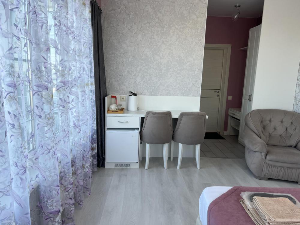 Номер состоит из 3 комнат, две спальни и зал. В каждой спальни двуспальная кровать (160/200), удобные ортопедические матрасы,постельное белье и комплект полотенец. В одной из спален есть полноценное спальное место ( диван 90/200), зал с обеденным столом. В номере два туалета и один душ. На территории гостевого дома чайно-кофейная зона работает бесплатно круглосуточно