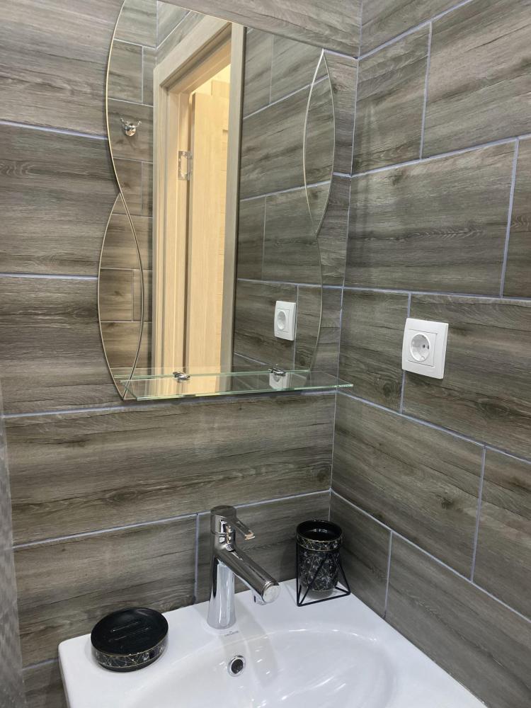 Комфортный двухкомнатный номер (45 кв. м.) с дизайнерским ремонтом. В номере две комнаты : первая комната - столовая-зал с необходимой посудой,холодильником,микроволновкой. Вторая комната - спальня с двумя односпальными кроватями (90/200) и диван мягкий ( спальное место 120/200). Удобный рабочий стол для двух человек, телевизор, кондиционер. Душевая комната и туалет.